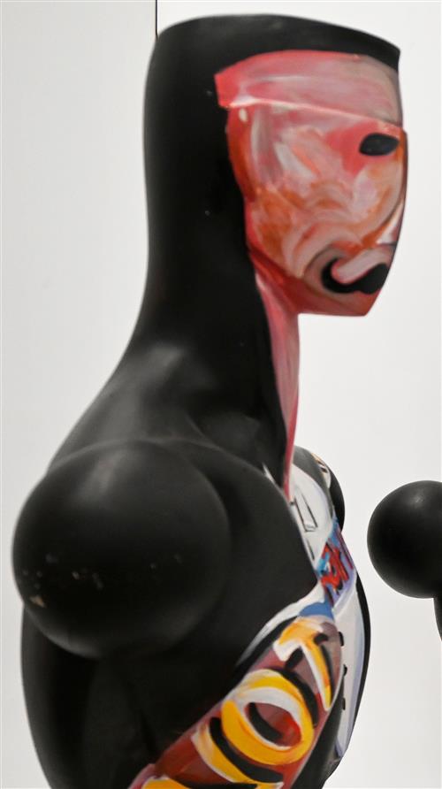 WODDEN SCULPTURE PAINTED WITH OIL, UNSIGNED, 76 X 57CM