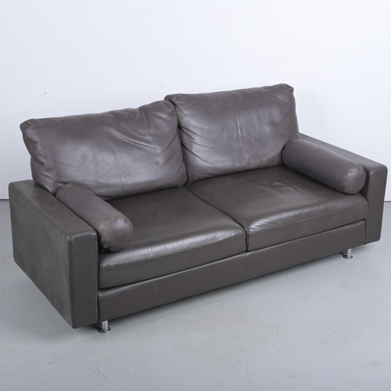 A LEATHER UPHOLSTERED TWO SEAT SOFA FOR KING FURNITURE (A/F) (83H X 182W X 90D CM) (THIS ITEM MUST BE REMOVED BY CARRIERS AT THE CUSTOMER'S EXPENSE. LEONARD JOEL STAFF CANNOT ASSIST CARRYING THIS ITEM.)