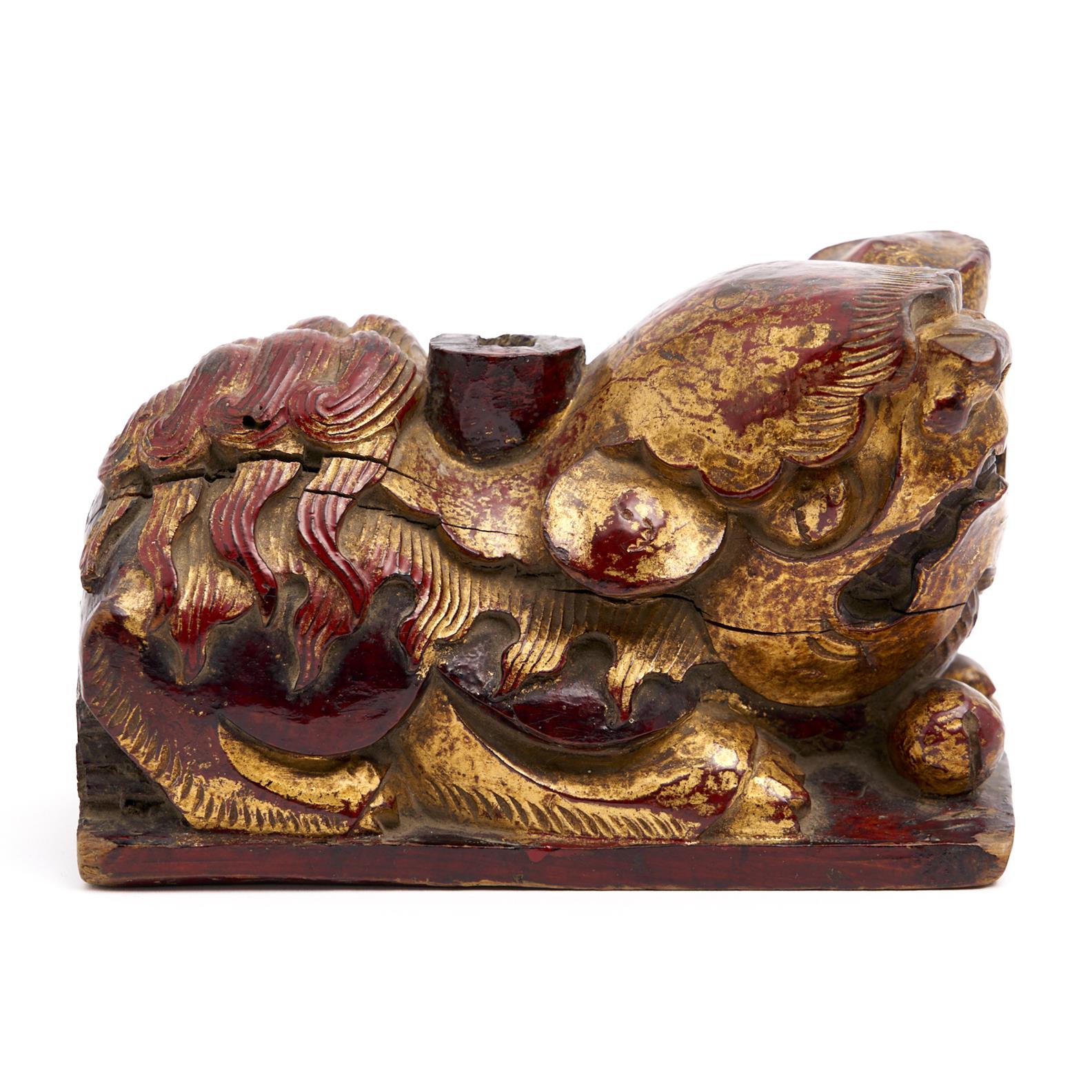 A CHINESE GILDED WOODEN GUARDIAN LION W.14CM, LEONARD JOEL DELIVERY SIZE: SMALL