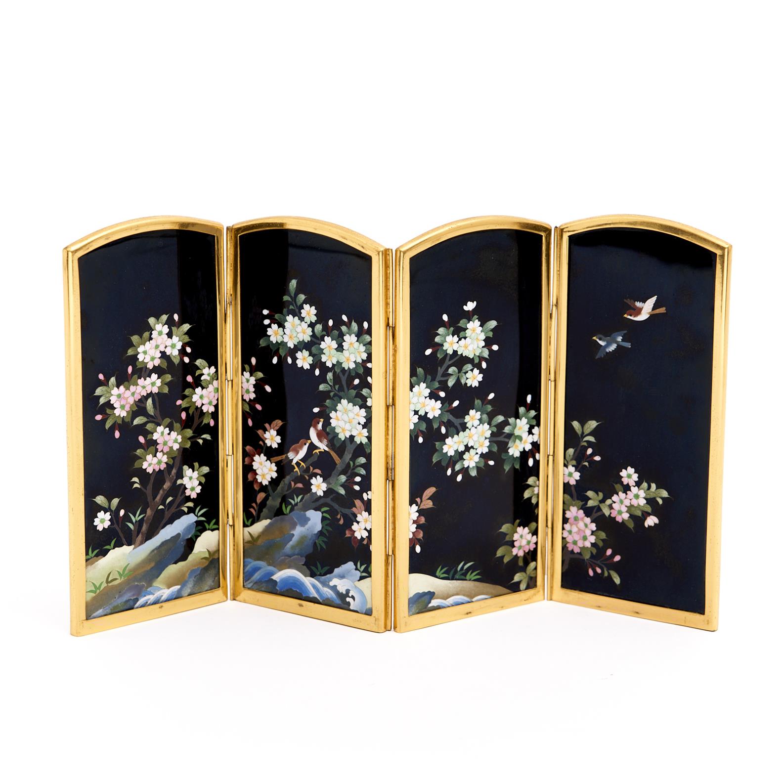 A MINIATURE CLOISONNE INSET TABLE SCREEN H.15CM, LEONARD JOEL DELIVERY SIZE: SMALL