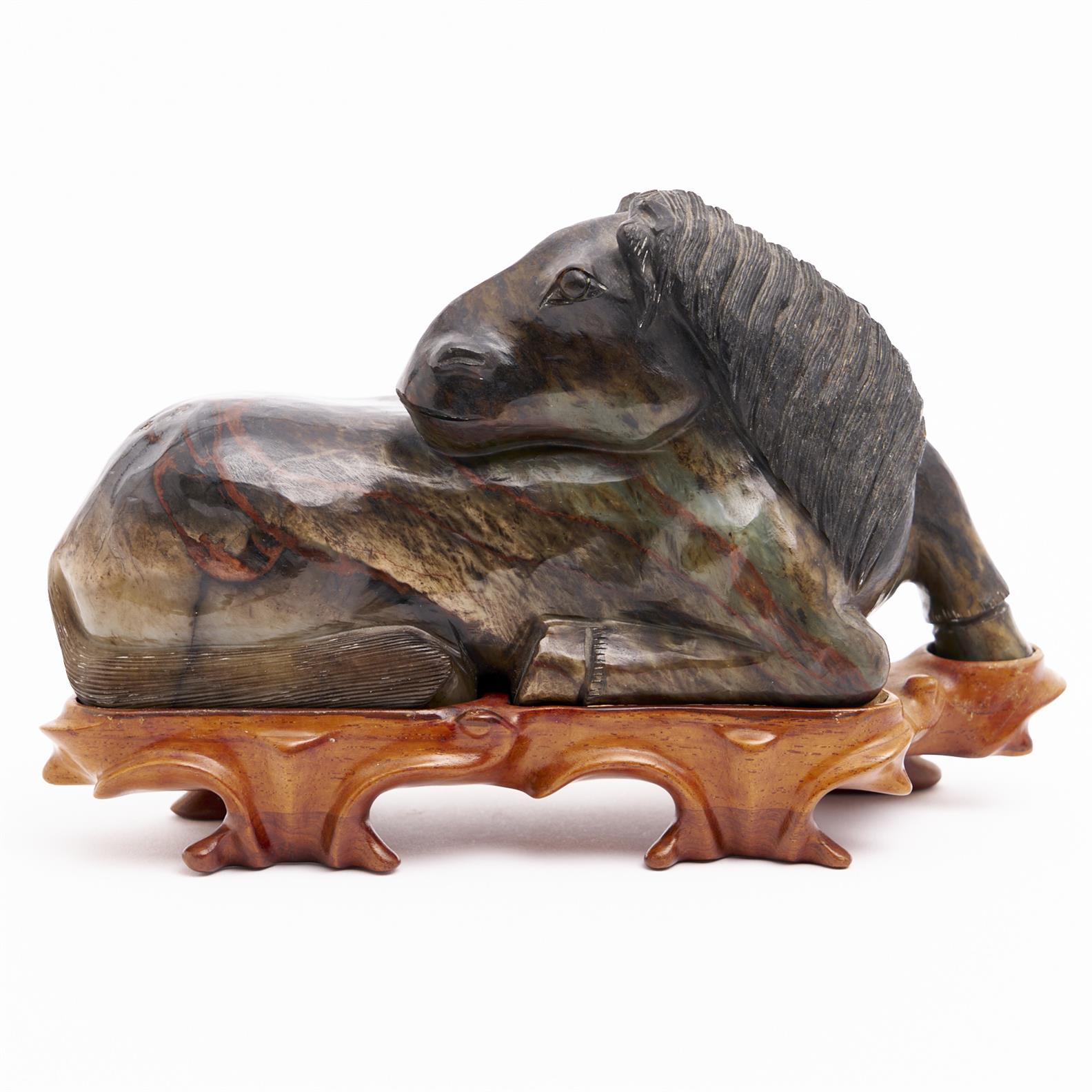 A CHINESE HARDSTONE HORSE ON STAND W.22CM, LEONARD JOEL DELIVERY SIZE: MEDIUM