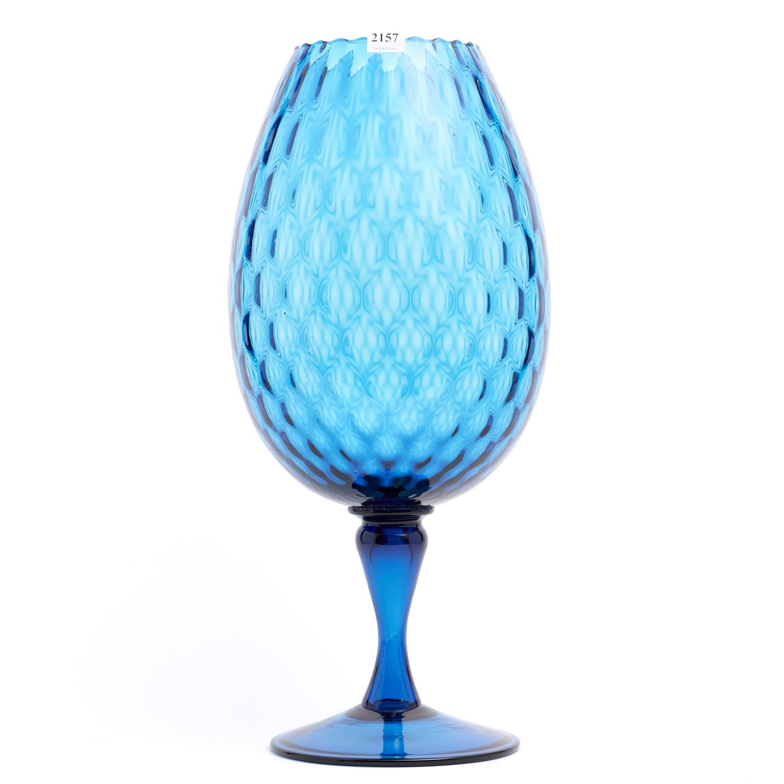 A LARGE AQUA BLUE GLASS BRANDY GOBLET-FORM VASE H.49CM, LEONARD JOEL DELIVERY SIZE: LARGE