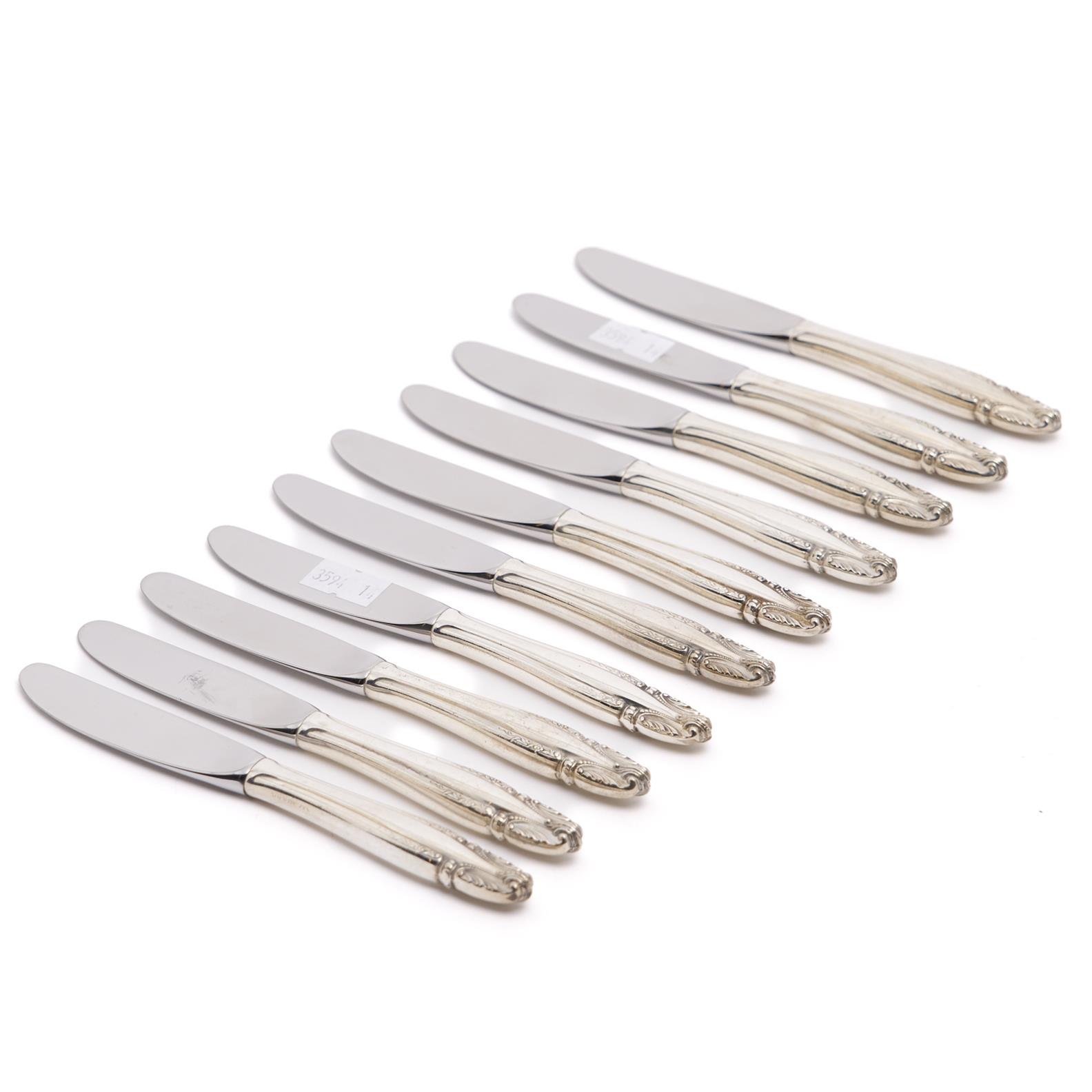 A SET OF 10 AMERICAN WALLACE STERLING SILVER HANDLED STAINLESS STEEL BLADE ENTREE KNIVES L.15.5CM