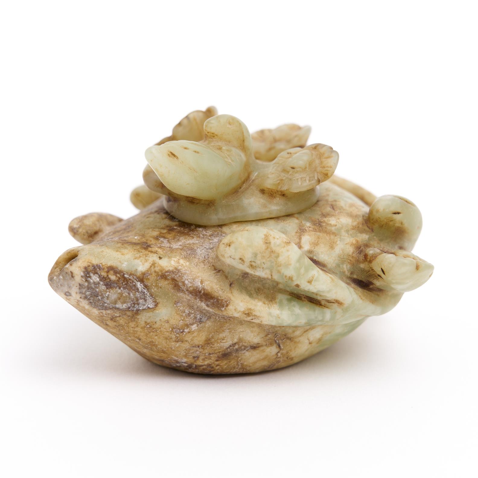 AN ANTIQUE CHINESE CARVED JADE FLORAL MINIATURE TEAPOT WITH BIRD DECORATED LID W.8.5CM, LEONARD JOEL DELIVERY SIZE: SMALL