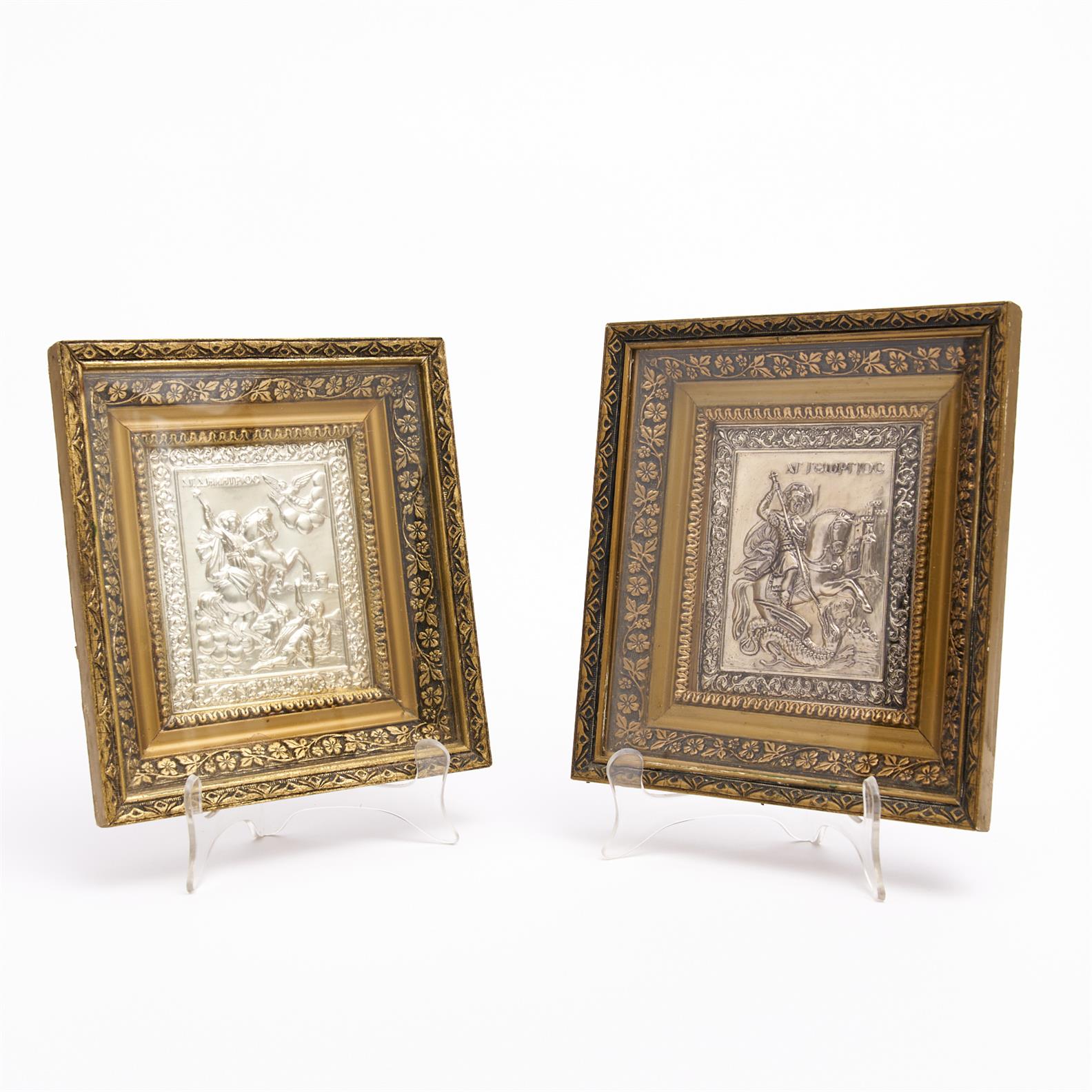 A PAIR OF GILTWOOD FRAMED RUSSIAN ICONS WITH CUT OUT SEGMENTS H.21CM, LEONARD JOEL DELIVERY SIZE: SMALL