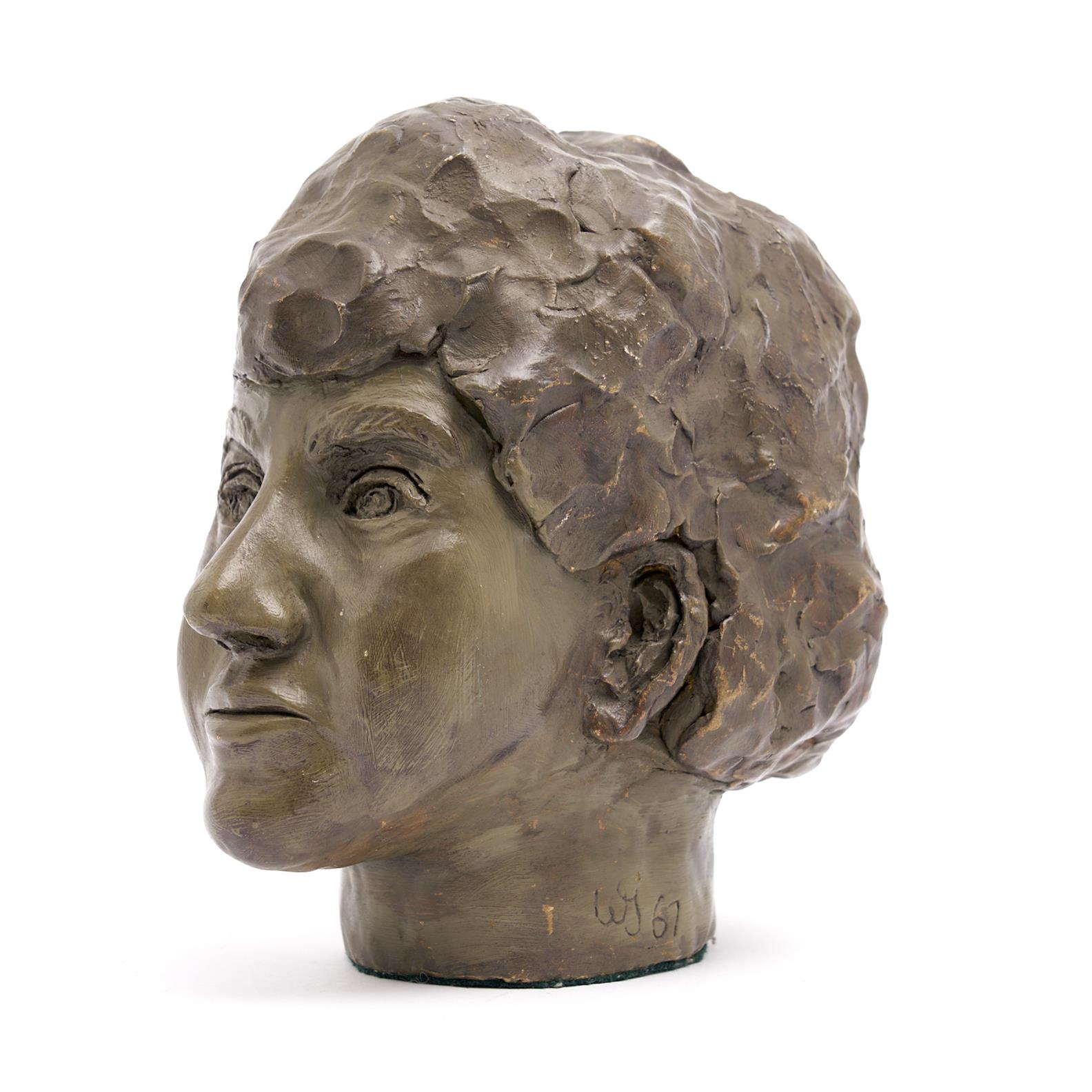 A GLAZED TERRACOTTA FIGURAL HEAD SIGNED AND DATED 1967 H.21.5CM, LEONARD JOEL DELIVERY SIZE: MEDIUM