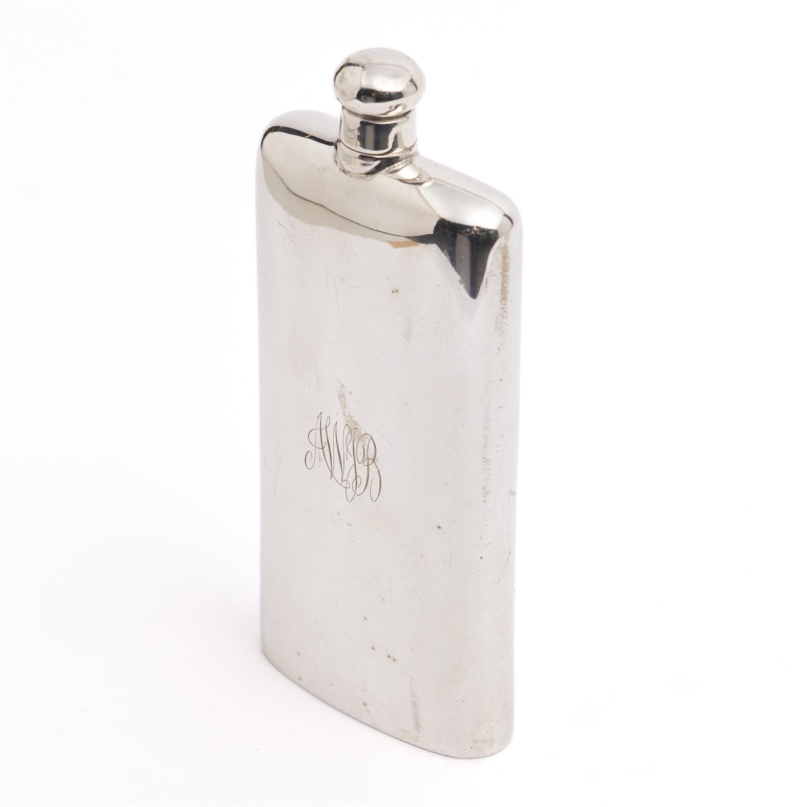 AN OVERSIZED ENGLISH SILVERPLATE HIP FLASK (SMALL DENTS) H.22.5CM
