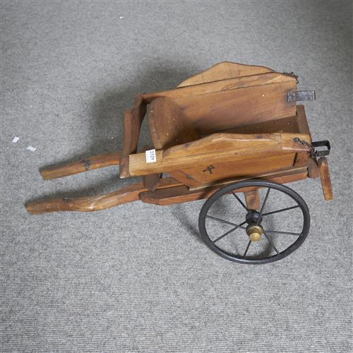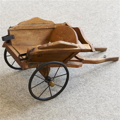 A 19TH CENTURY OAK AND METAL MINIATURE APPRENTICE HORSES CART W.58CM, LEONARD JOEL DELIVERY SIZE: LARGE