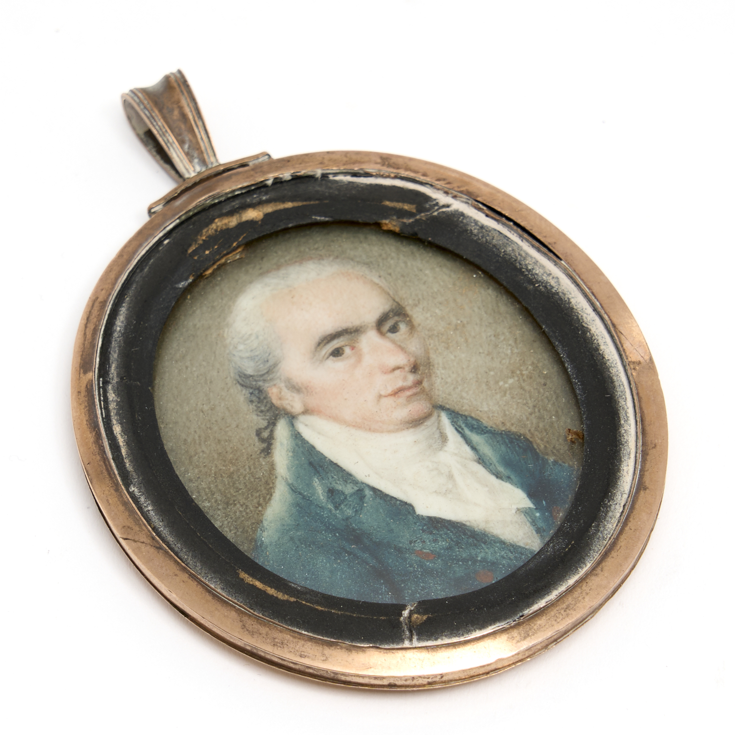 A GEORGE III PORTRAIT MINIATURE WITH PINCHBECK FRAME L.8CM