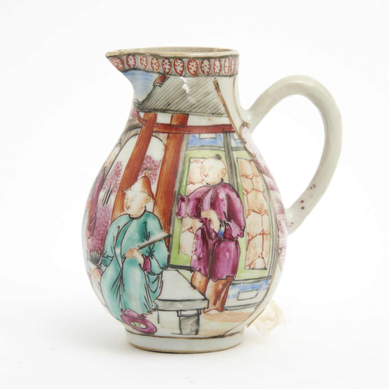 AN 18TH CENTURY CHINESE FAMILLE ROSE PARROT BEAK JUG (HANDLE RESTORED) H.11.5CM