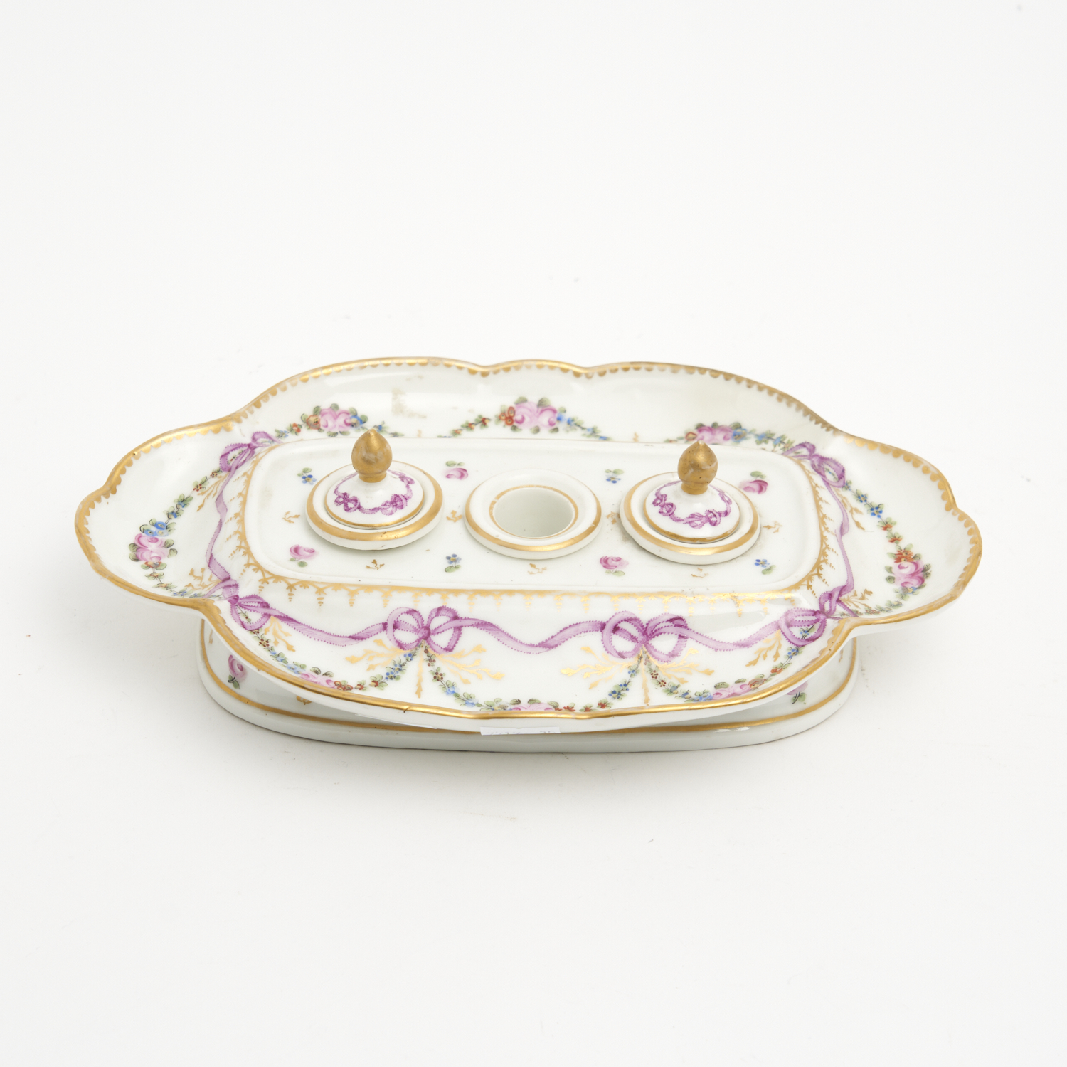 A 19TH CENTURY PARIS PORCELAIN INKWELL L.26.5CM
