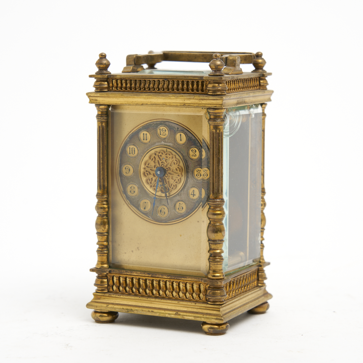 A FRENCH GILDED BRASS CARRIAGE CLOCK (NO KEY) H.13CM