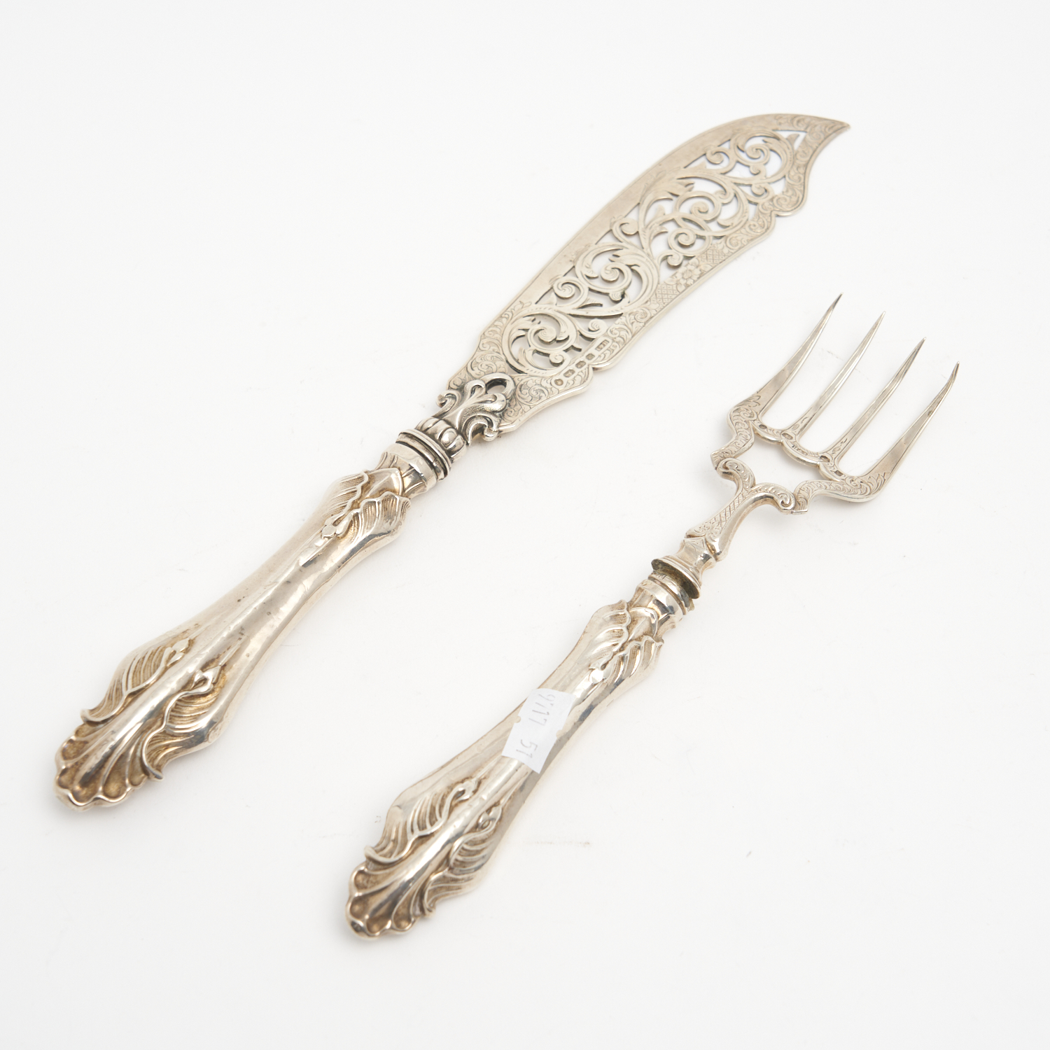 A PAIR OF S/S FISH SERVERS (A/F - FORK LOOSE FROM HANDLE) L.30.5CM