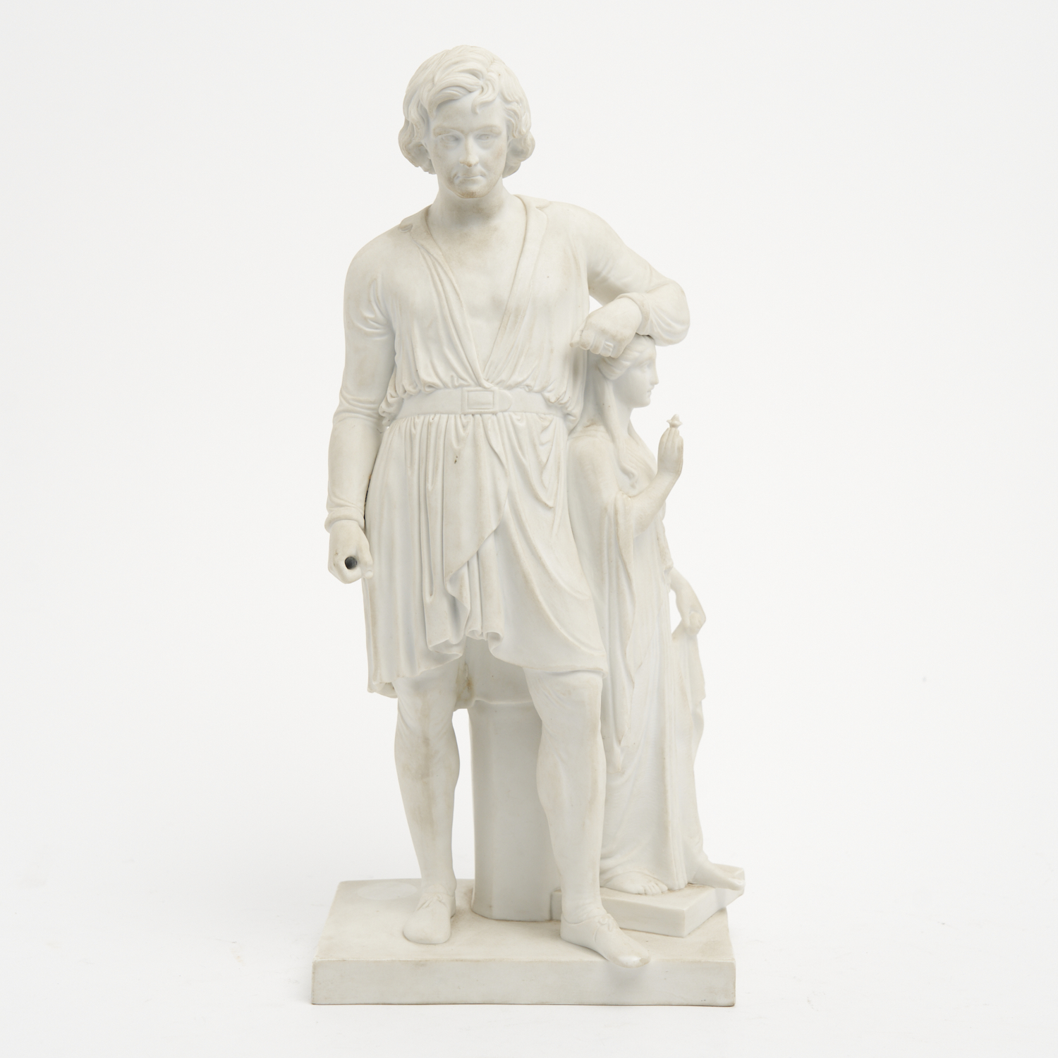 A ROYAL COPENHAGEN BISCUIT PORCELAIN FIGURE DEPICTING THE SCULPTOR THORVALDSEN (A/F) H.35CM