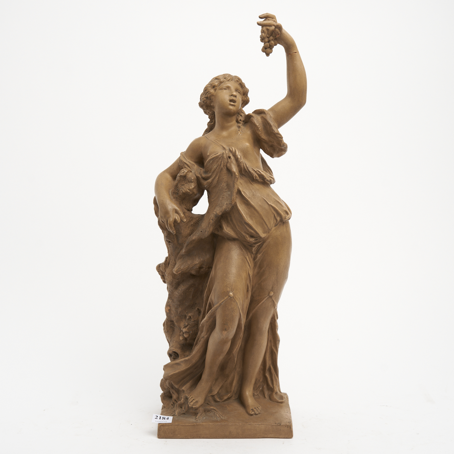 A FRENCH TERRACOTTA SCULPTURE OF A GIRL EATING GRAPES, INSCRIBED 'CLODION' TO BASE (AF) H.52.5CM
