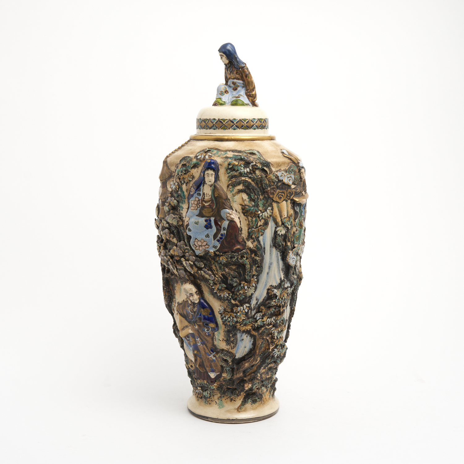A LARGE JAPANESE LIDDED SATSUMA VASE H.52CM