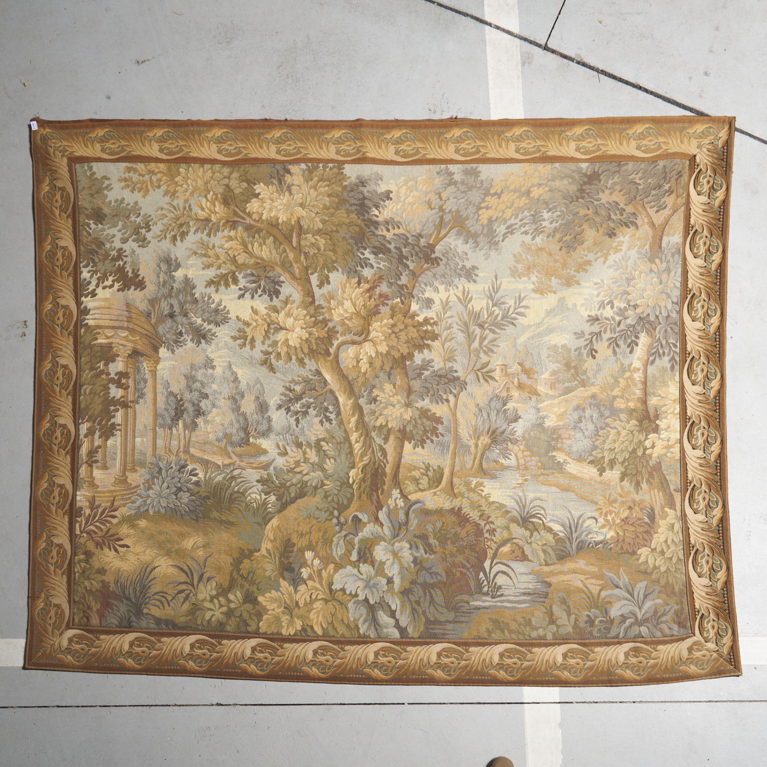 A FRENCH AUBUSSON STYLE TAPESTRY OF A FOREST SCENE 170 X 208CM