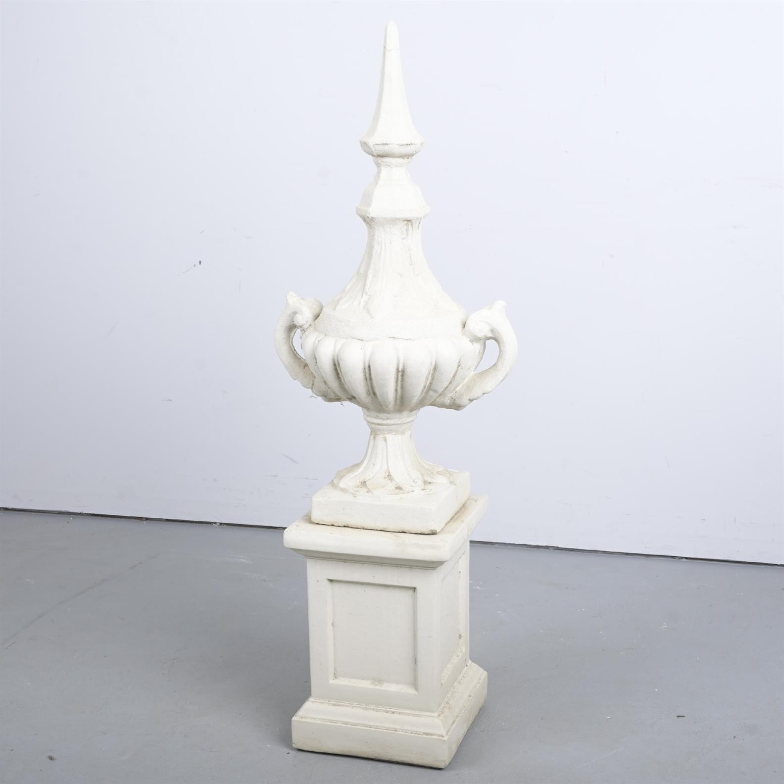 A CONCRETE FINIAL ON PEDESTAL - SIGNS OF REPAIR (A/F) (102H X 30W X 30D CM) (THIS ITEM MUST BE REMOVED BY CARRIERS AT THE CUSTOMER'S EXPENSE. LEONARD JOEL STAFF CANNOT ASSIST CARRYING THIS ITEM.)