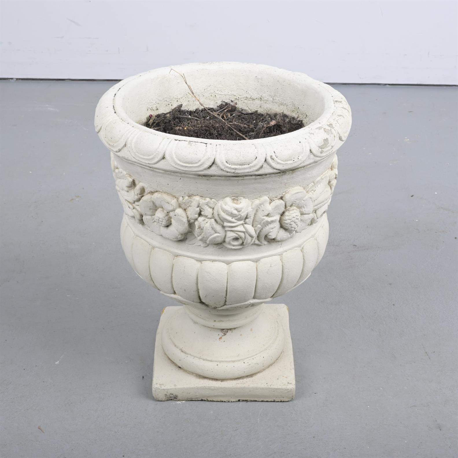 A CONCRETE GARDEN URN (A/F) (52H X 40DIA CM) (THIS ITEM MUST BE REMOVED BY CARRIERS AT THE CUSTOMER'S EXPENSE. LEONARD JOEL STAFF CANNOT ASSIST CARRYING THIS ITEM.)