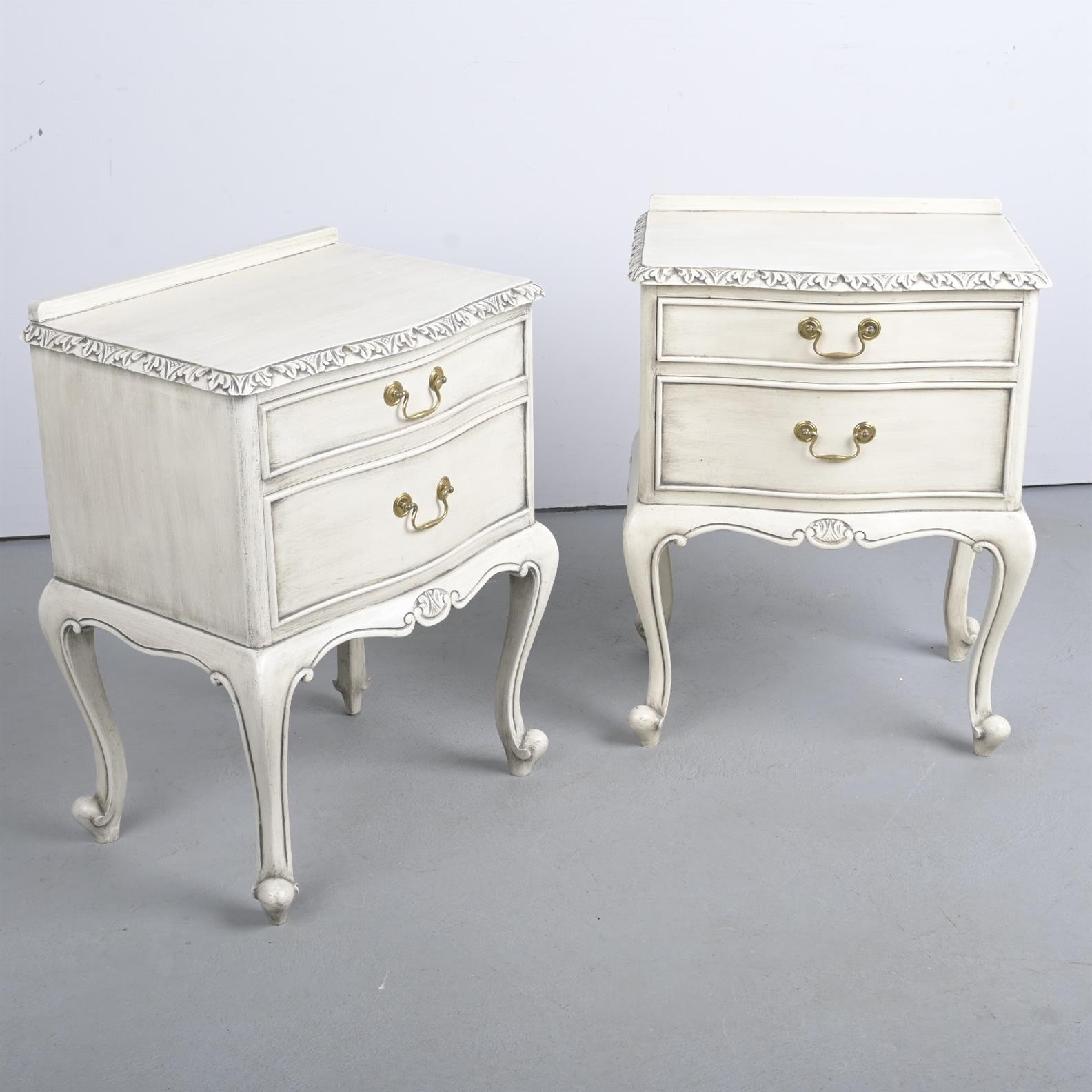 A PAIR OF PAINTED BEDSIDE TABLES (A/F) (70H X 55W X 40D CM)