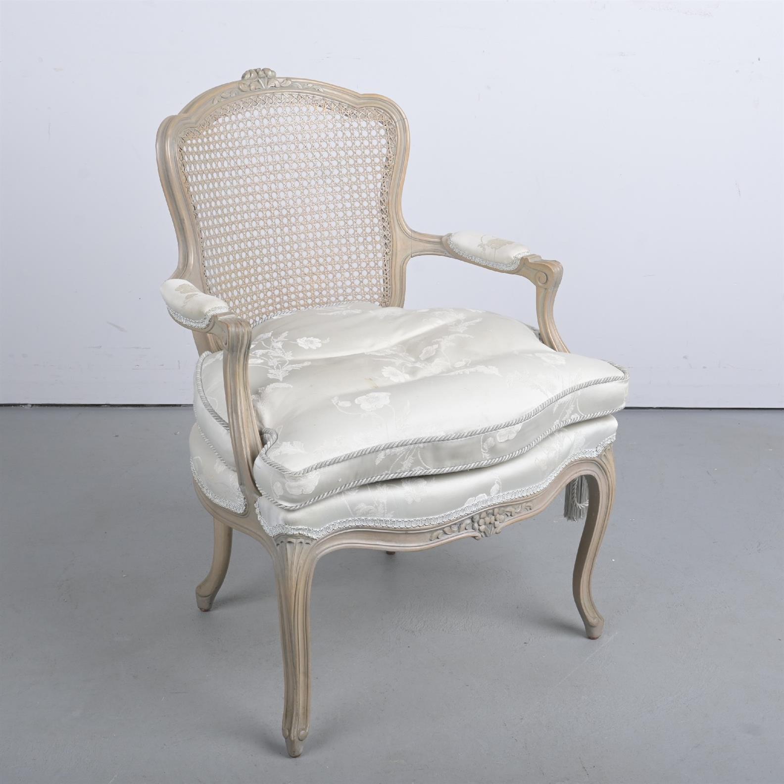 A FRENCH-STYLE FAUTEUIL WITH CANED BACK (91H X 63W X 64D CM)