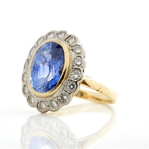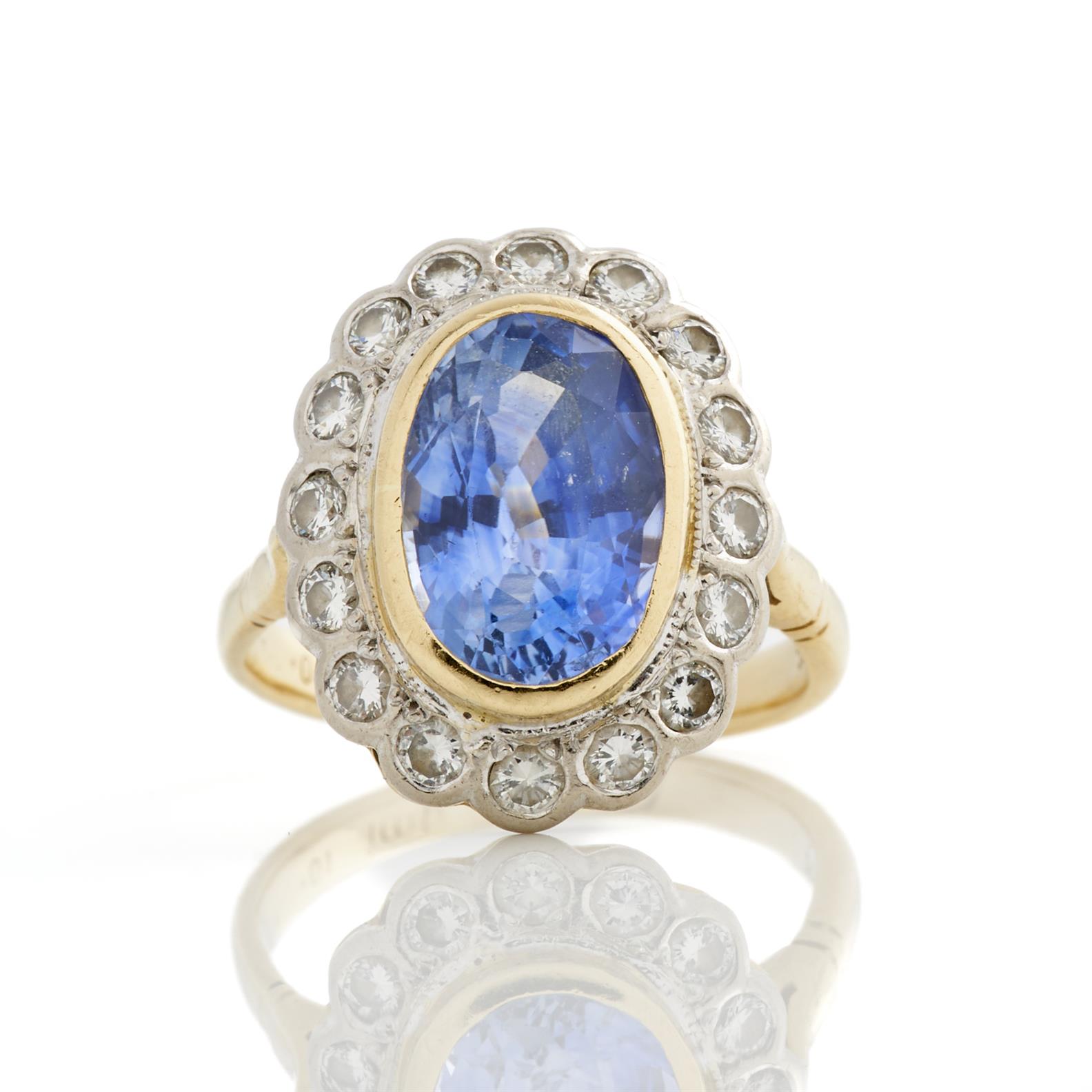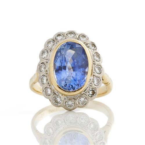 A SAPPHIRE AND DIAMOND RING IN 18CT GOLD, SIZE L, 5.4GMS