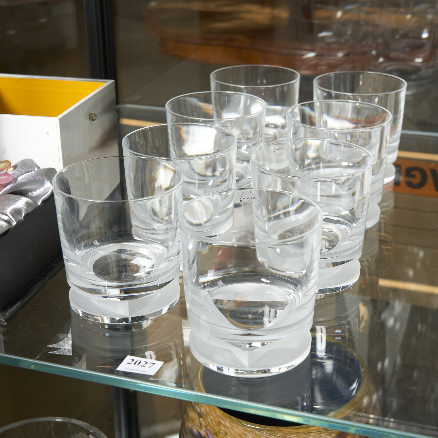 A SET OF EIGHT MURANO VENEZIA SALVIATI HEAVY GLASS WHISKEY TUMBLERS H.9.5CM