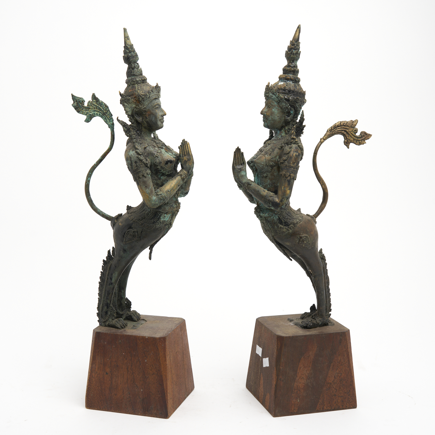 A PAIR OF THAI BRONZE GODDESS SCULPTURES H.52CM