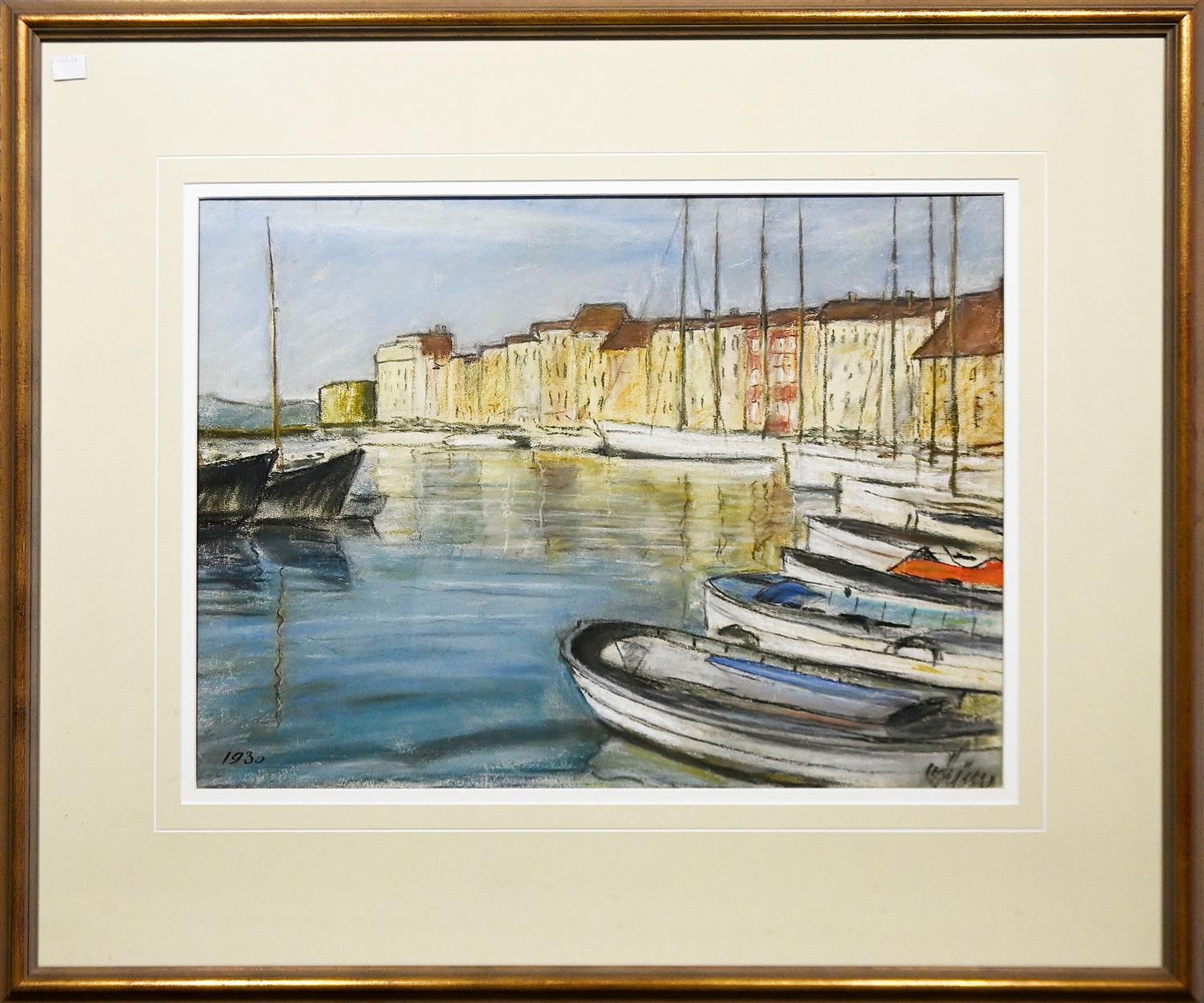 ARTIST UNKNOWN, (BOATS IN A PORT) 1930,