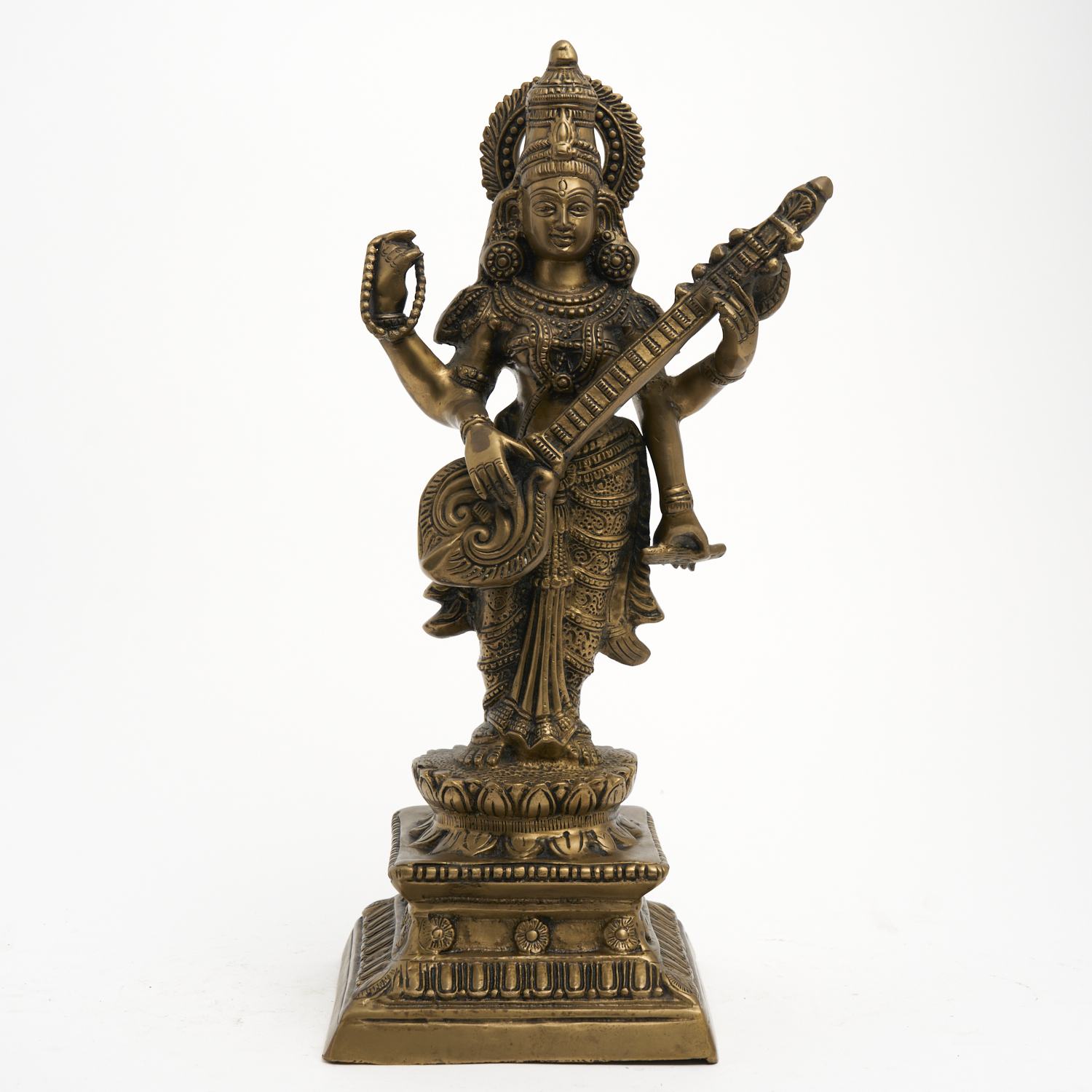 AN INDIAN CAST BRASS SARASVATI STATUE H.49.5CM