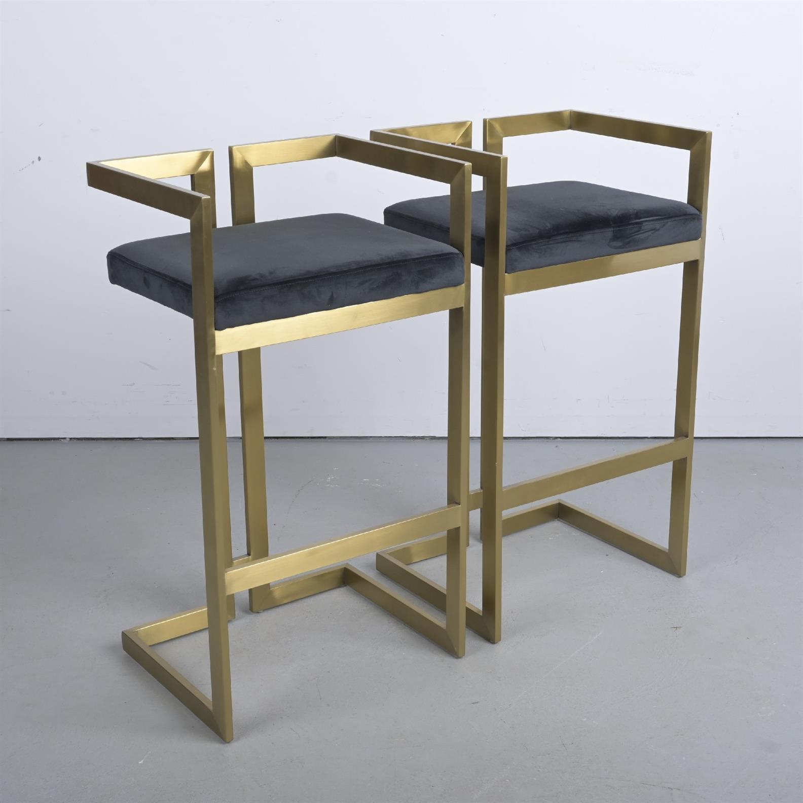 A PAIR OF CONTEMPORARY STOOLS, EACH WITH UPHOLSTERED SEAT (91H X 50W X 39D CM)