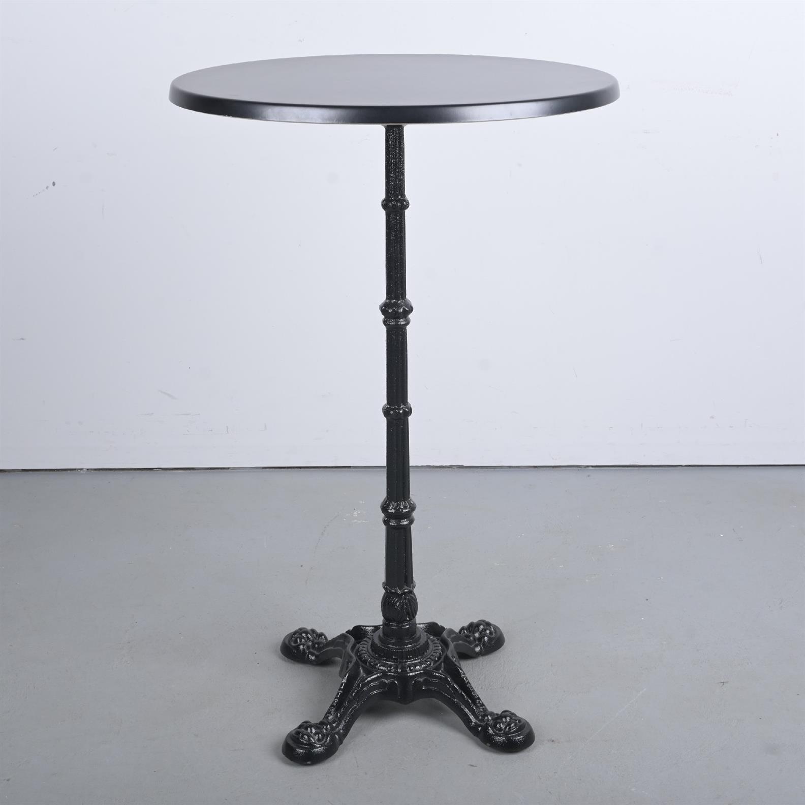 A TALL CAST IRON BASED TABLE (110H X 70DIA CM) (THIS ITEM MUST BE REMOVED BY CARRIERS AT THE CUSTOMER'S EXPENSE. LEONARD JOEL STAFF CANNOT ASSIST CARRYING THIS ITEM.)