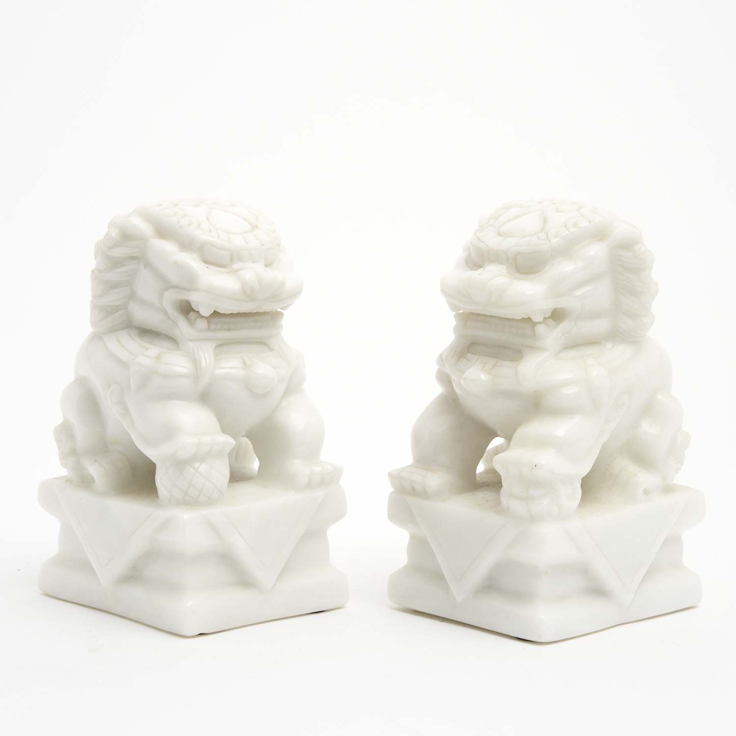 A PAIR OF MARBLE FOO DOGS (A/F) H.19CM