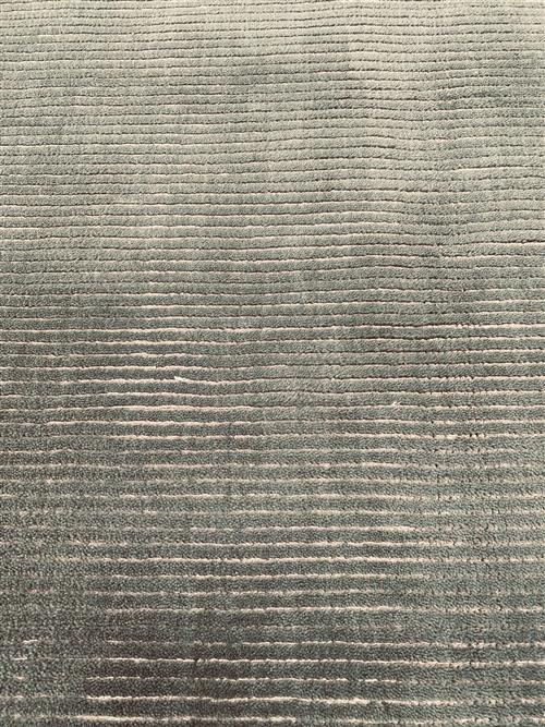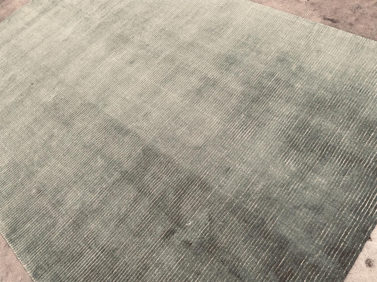 A NEW MODERN DESIGNER WOOL RUG. HAND MADE. MINT-TONED PILE WITH BEIGE SILK TEXTURED LOOPS THROUGHOUT. ORIGIN: RAJASTHAN (275 X 185 CM) (PLEASE NOTE THERE MAY BE SOME COLOUR VARIATION FROM PHOTOGRAPH)