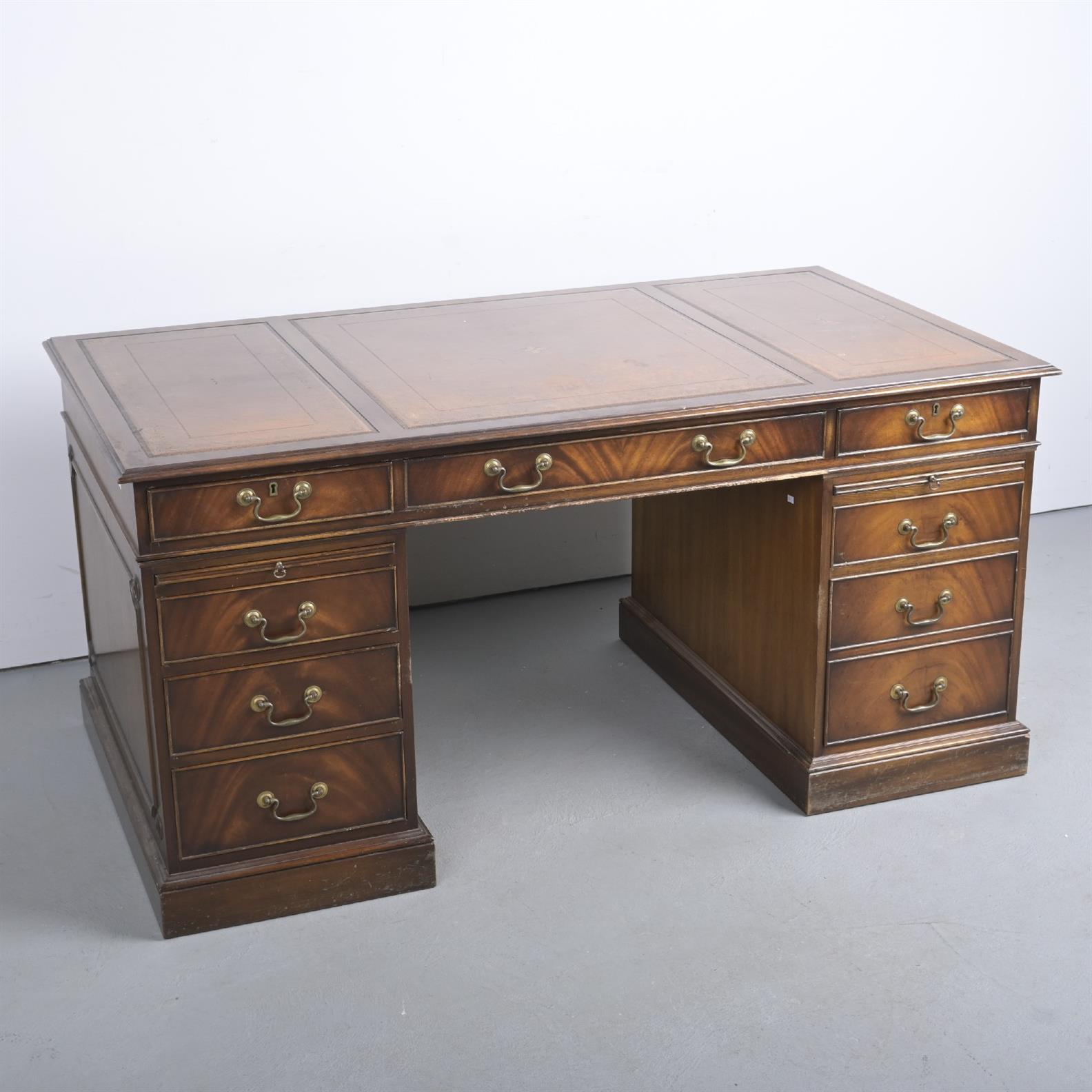 AN ANTIQUE-STYLE MAHOGANY PEDESTAL DESK (A/F) (78H X 157W X 87D CM) (THIS ITEM MUST BE REMOVED BY CARRIERS AT THE CUSTOMER'S EXPENSE. LEONARD JOEL STAFF CANNOT ASSIST CARRYING THIS ITEM.)