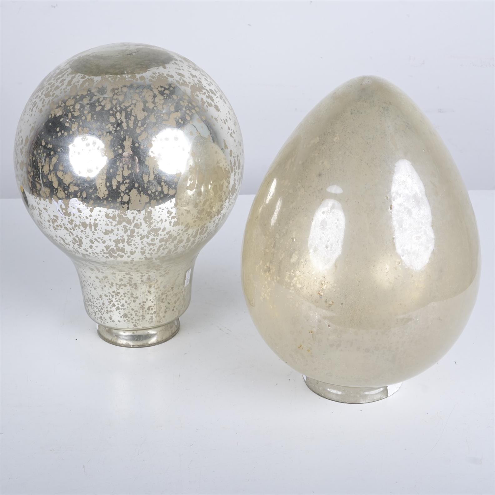 TWO GLASS LIGHT SHADES IN ANTIQUED SILVERED FINISH (38H X 27DIA CM)