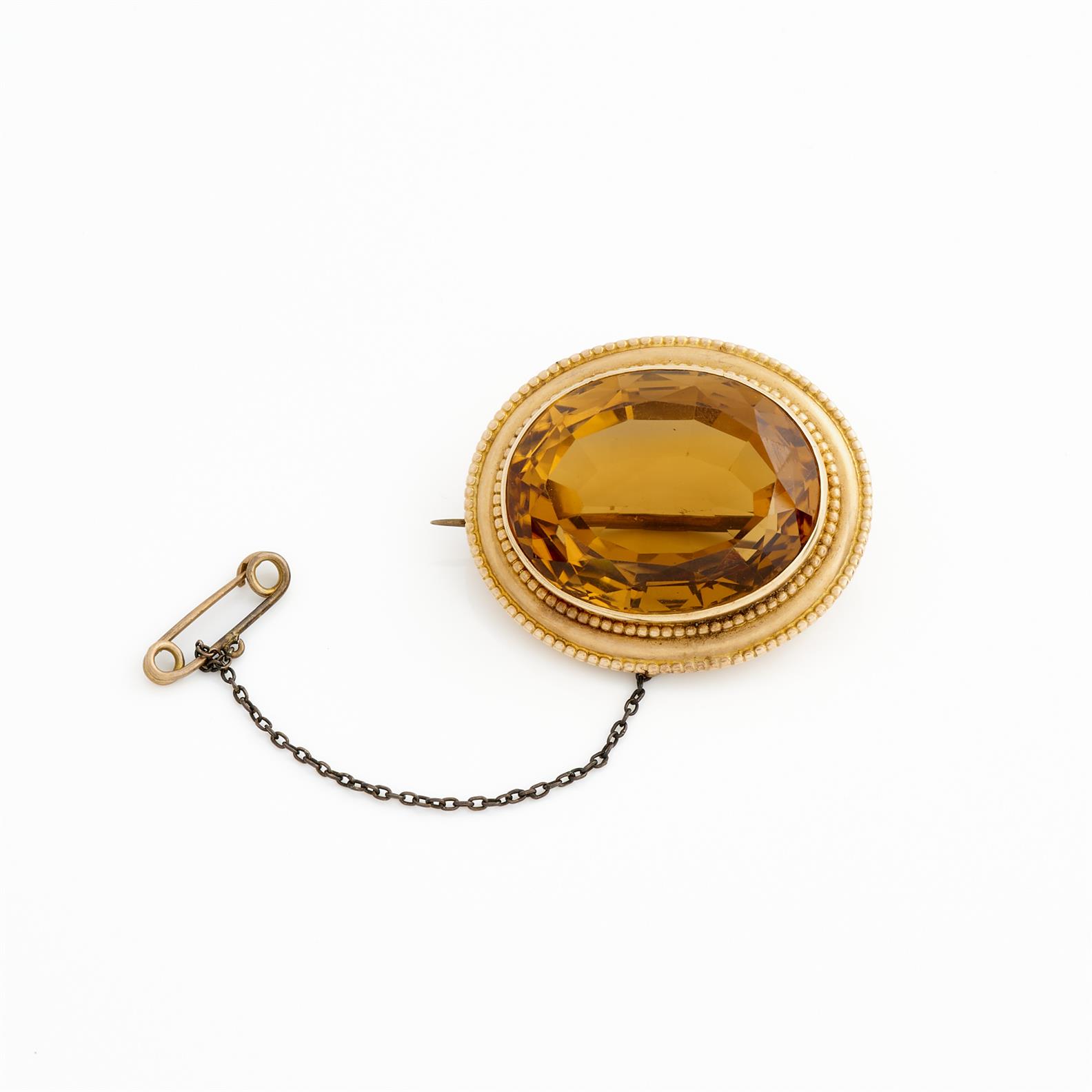 CATANACH, A CITRINE BROOCH IN 15CT GOLD, 40 X 35MM, 24.4GMS