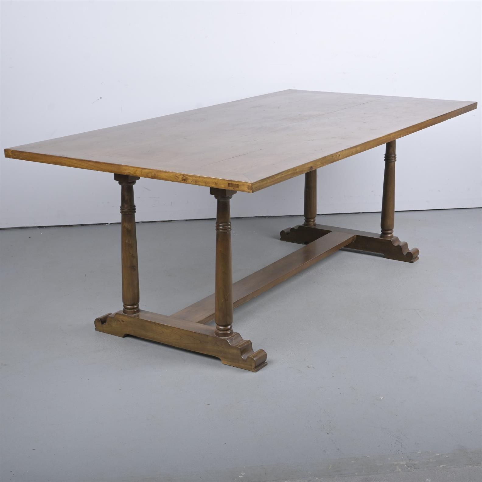 A HARDWOOD TRESTLE DINING TABLE (A/F) (77H X 210W X 107D CM) (THIS ITEM MUST BE REMOVED BY CARRIERS AT THE CUSTOMER'S EXPENSE. LEONARD JOEL STAFF CANNOT ASSIST CARRYING THIS ITEM.)