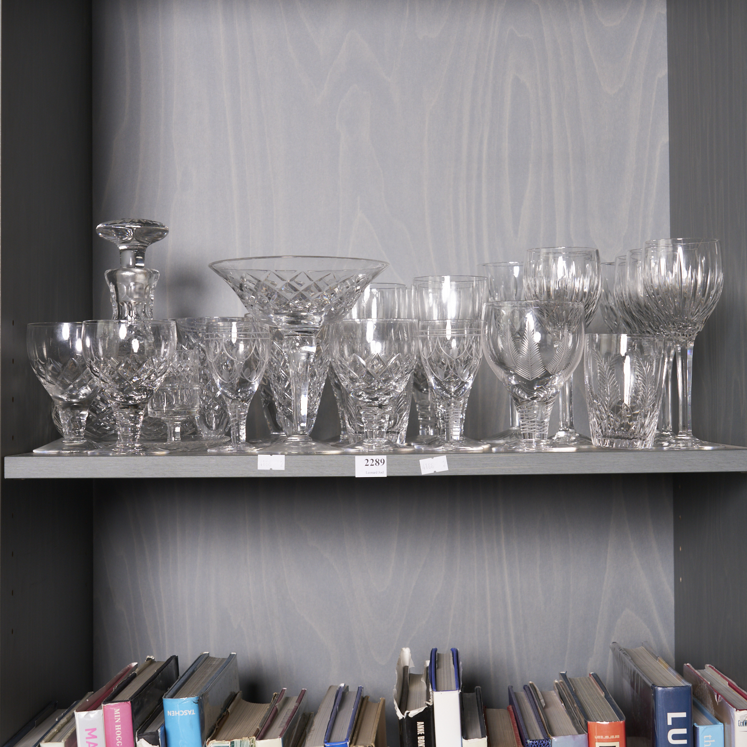 A SHELF OF PRIMARILY STUART CRYSTAL H.21CM (TALLEST)