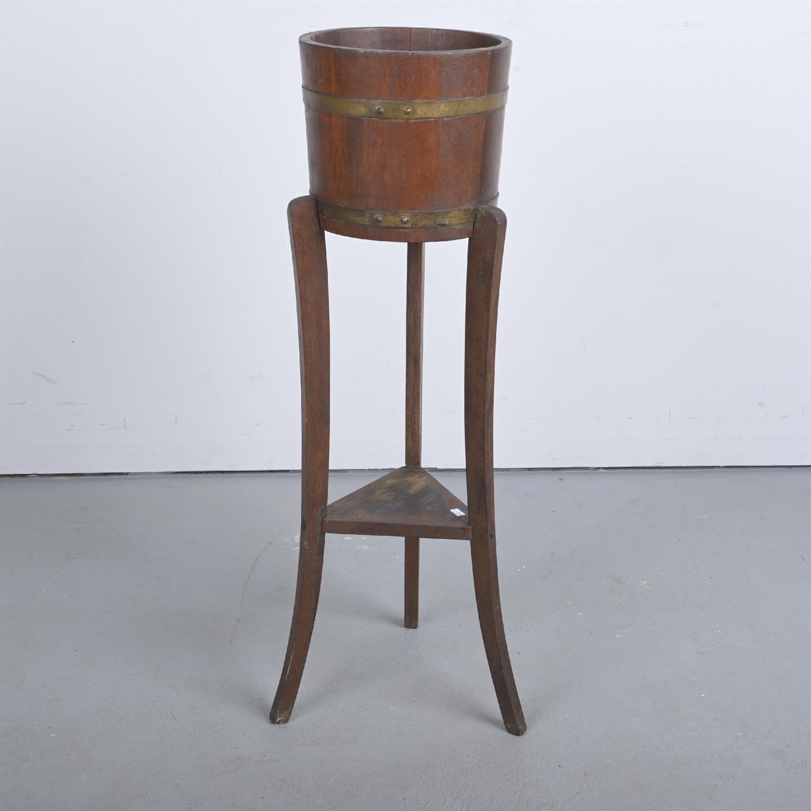 A HARDWOOD BARREL FORM PLANT STAND (92H CM)