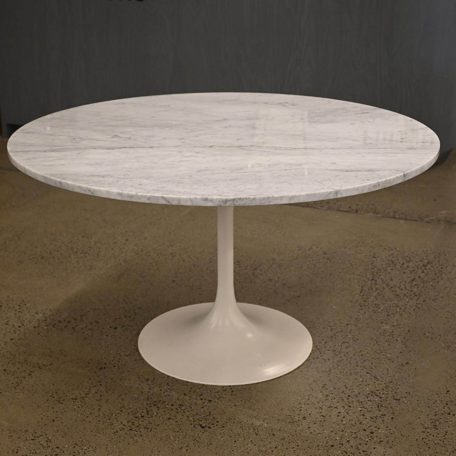 A TULIP BASED DINING TABLE WITH MARBLE TOP (A/F) (71H X 129DIA CM) (THIS ITEM MUST BE REMOVED BY CARRIERS AT THE CUSTOMER'S EXPENSE. LEONARD JOEL STAFF CANNOT ASSIST CARRYING THIS ITEM.)