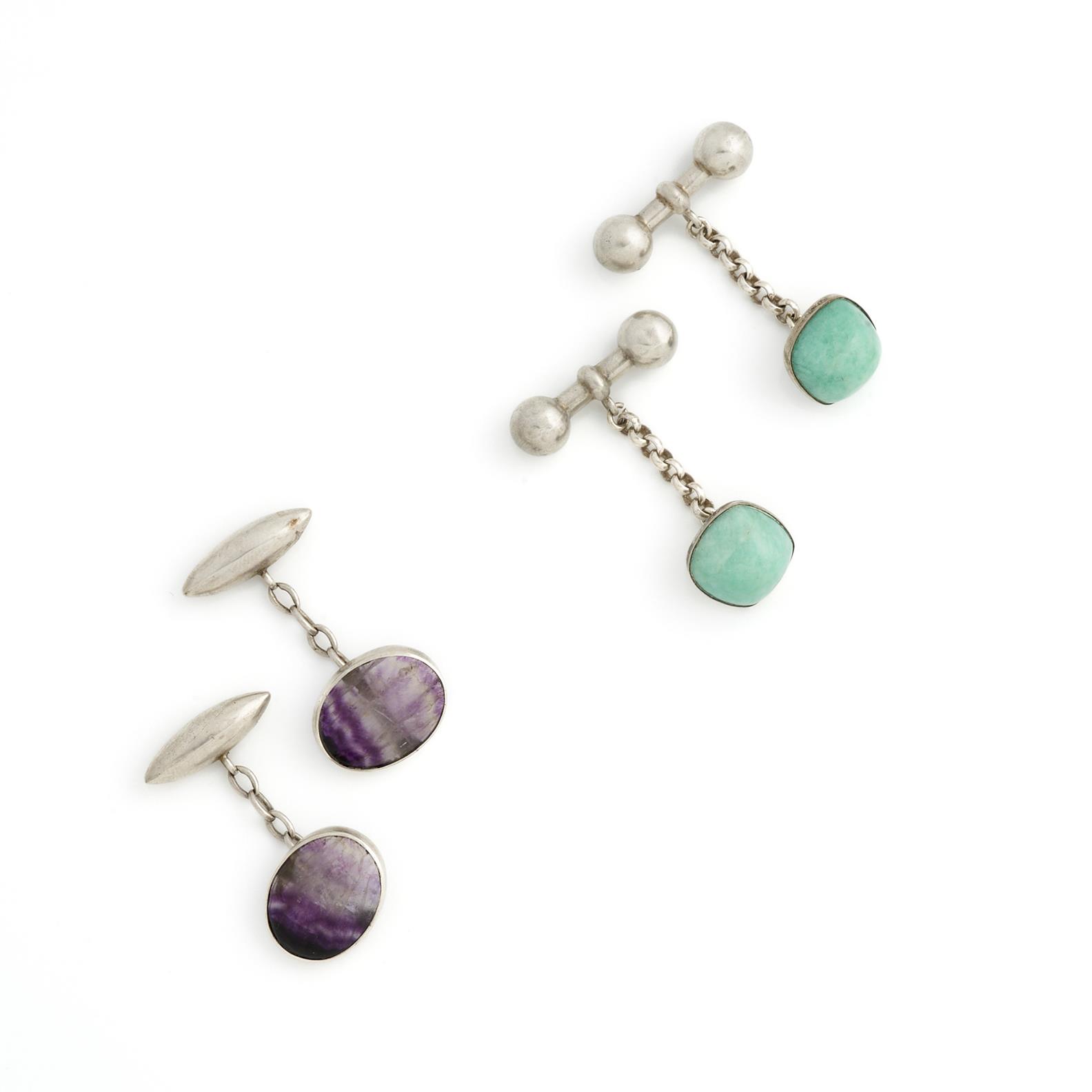 TWO PAIRS OF HARDSTONE CUFFLINKS IN SILVER