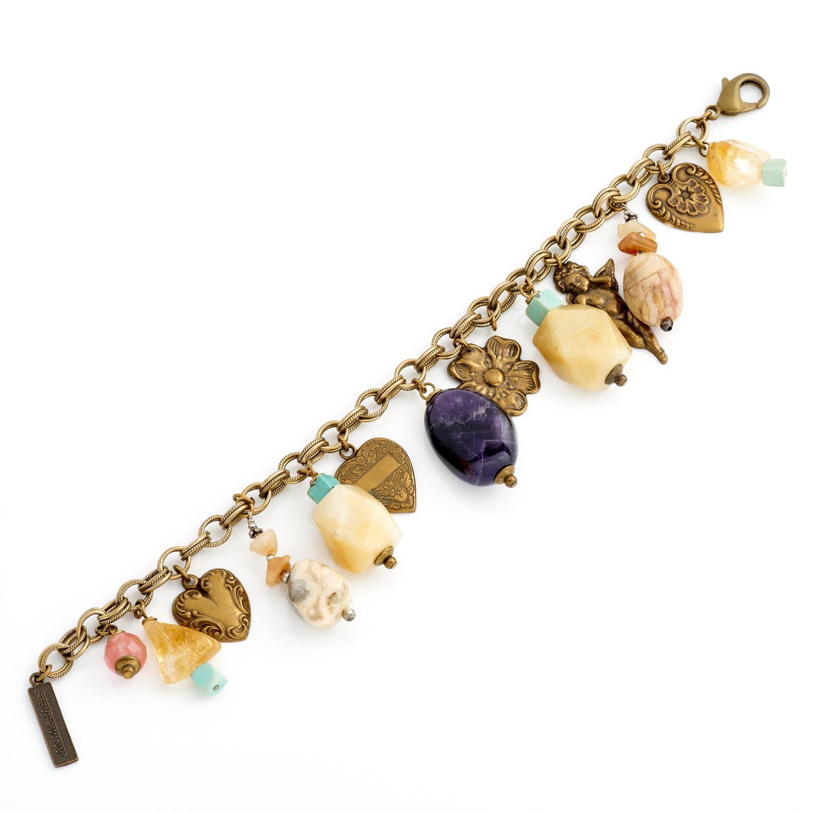 JAN MICHAELS, A HARDSTONE CHARM BRACELET IN BASE METAL, 230MM