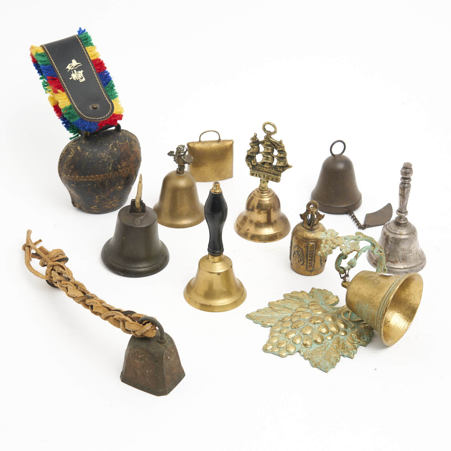 A COLLECTION OF VINTAGE BRASS AND BRONZE BELLS H.18CM (TALLEST), LEONARD JOEL DELIVERY SIZE: MEDIUM
