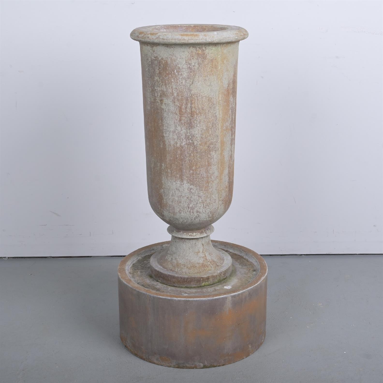 A LARGE OLD FRENCH TERACOTTA GARDEN WATER FEATURE, IN TWO PARTS (100H X 50DIA CM) (THIS ITEM MUST BE REMOVED BY CARRIERS AT THE CUSTOMER'S EXPENSE. LEONARD JOEL STAFF CANNOT ASSIST CARRYING THIS ITEM.)