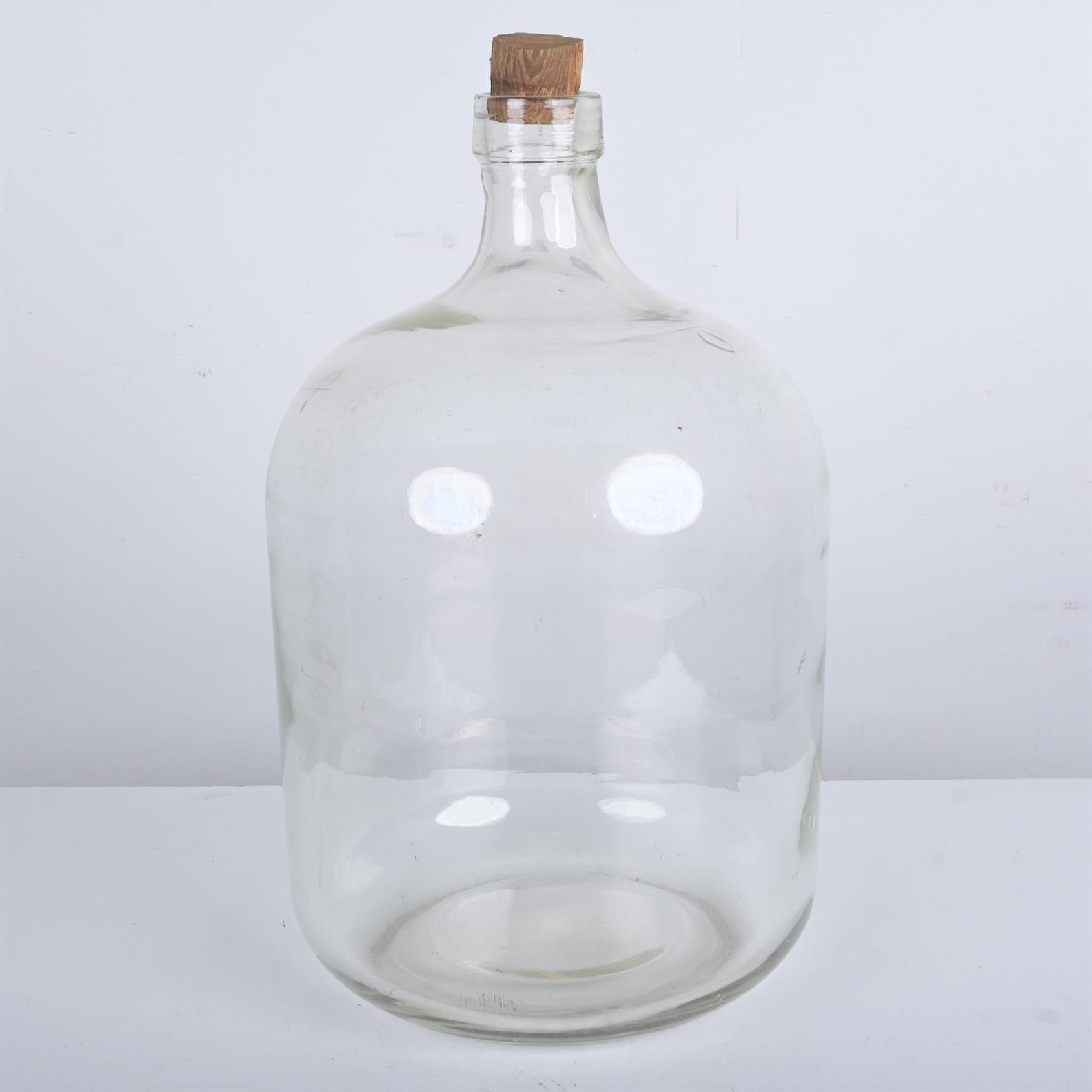 AN EARLY 20th CENTURY FRENCH CLEAR GLASS DEMIJOHN (60H X 30DIA CM)