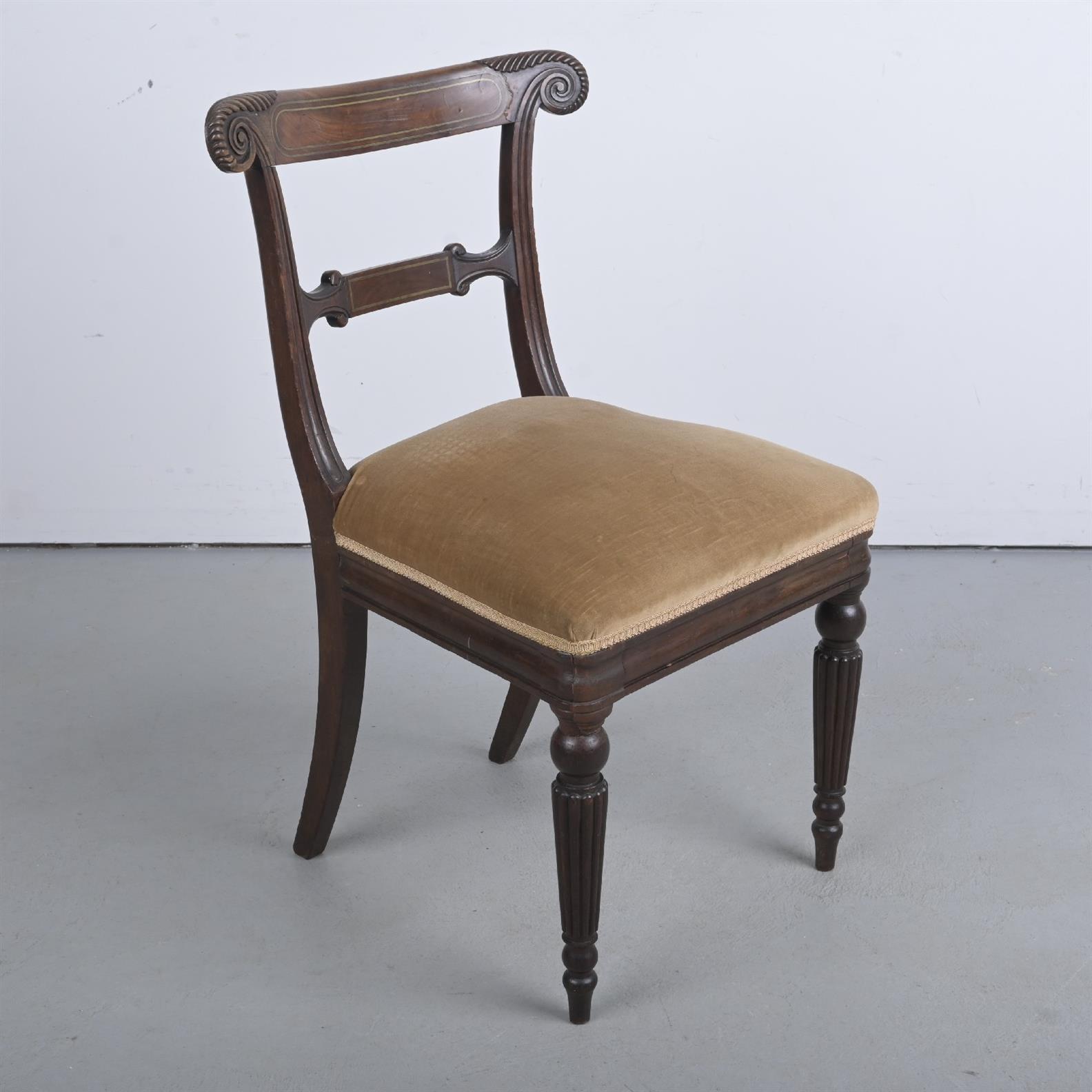A REGENCY STYLE ROSEWOOD & BRASS INLAID DINING CHAIR (A/F) (85H X 53W X 52D CM)