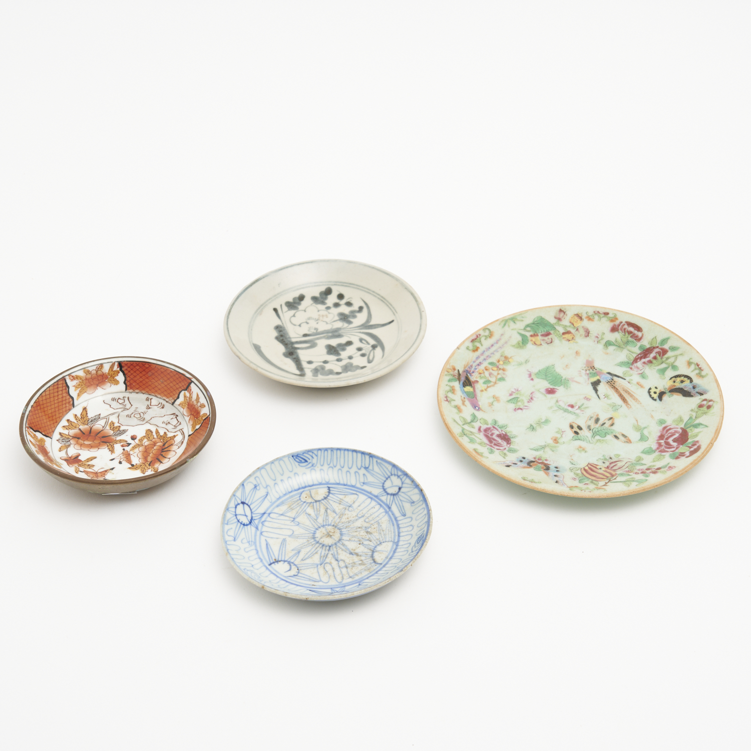 FOUR CHINESE CERAMIC DISHES, 17TH TO 19TH CENTURY DIA.19CM (LARGEST)