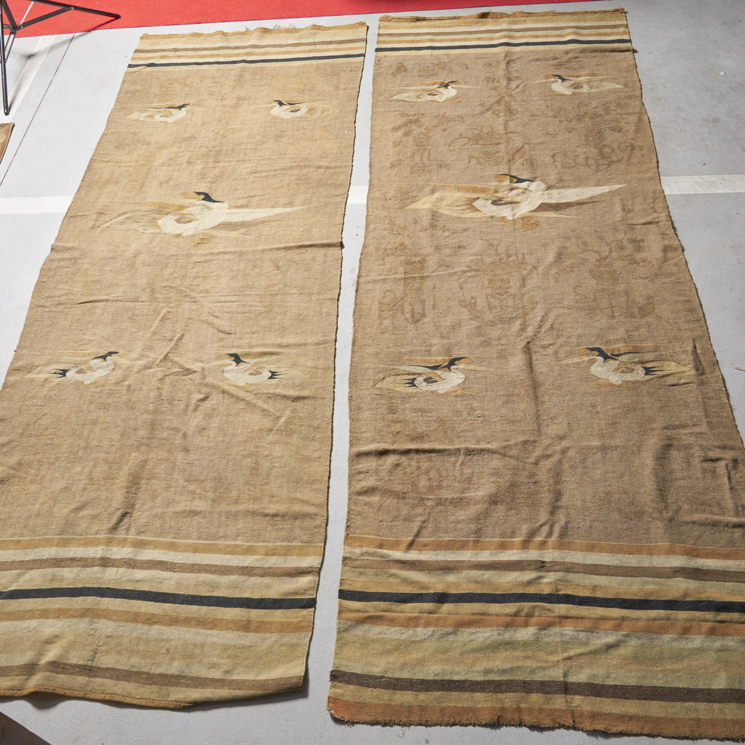 A PAIR OF ANTIQUE MONGOLIAN KILIMS/WALL HANGINGS (FORMERLY PROPERTY OF ARTIST LINA BRYANS) H.326CM