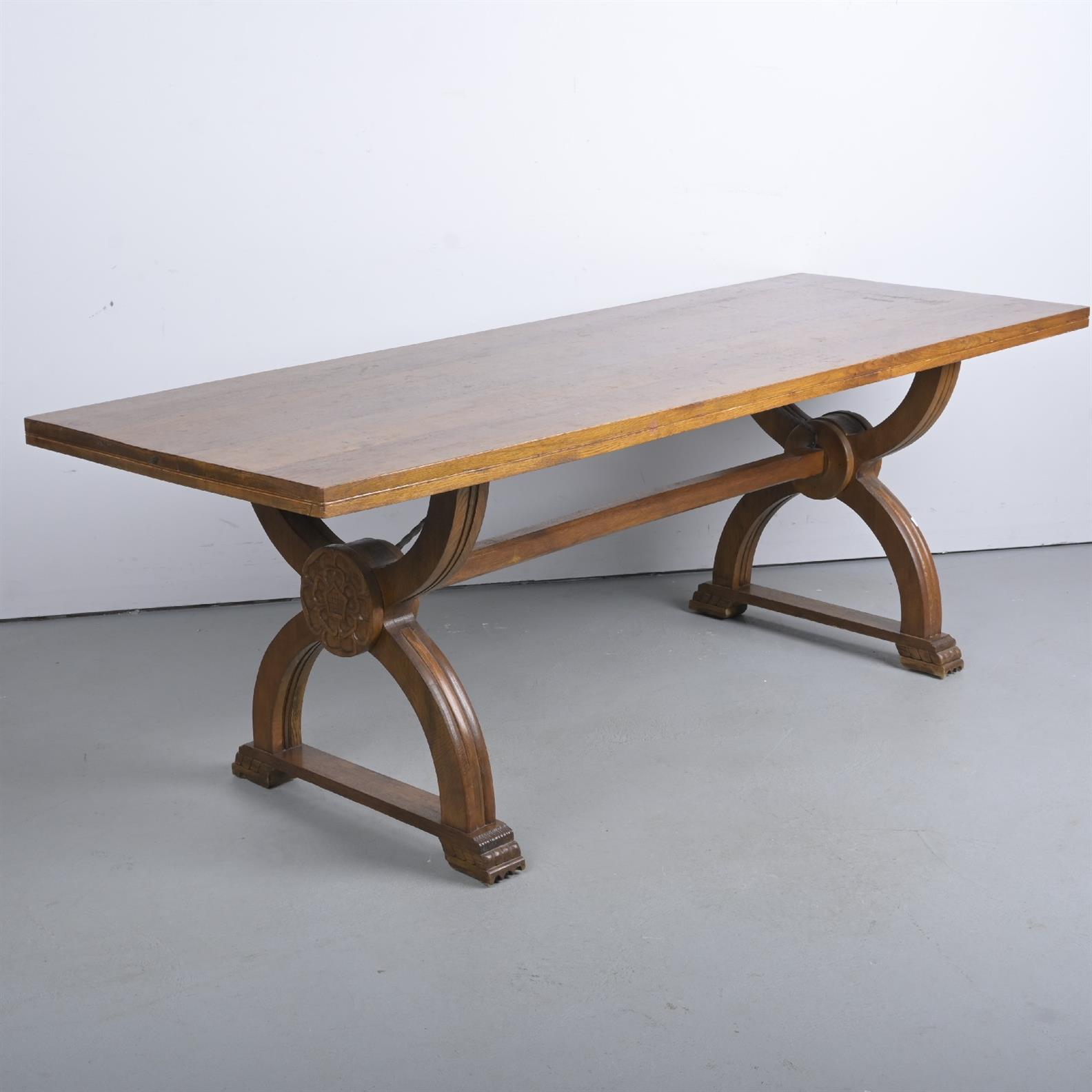 A STRECHER BASED DINING TABLE (A/F) (73H X 212W X 76D CM)